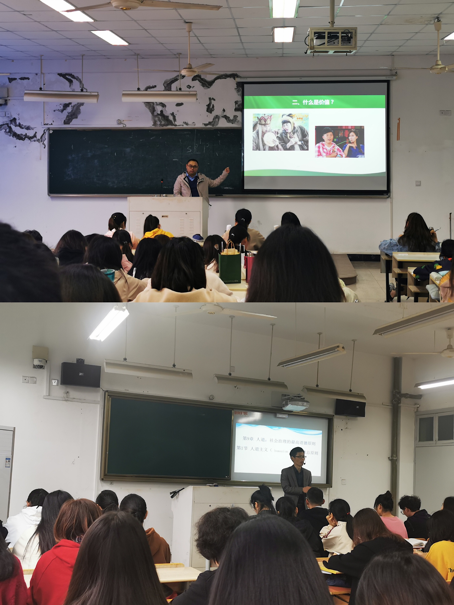 公开课程开讲中,刘旭老师的《马克思主义原理》课程,从宇宙演化和北京奥运的开幕式导入,阐述了价值的概念、分类以及来源等问题,生动地向同学们解释了“人类独特的领域——价值”;宫凌海老师的《中国近现代史纲要》课程,围绕“能不能说洋务运动失败了”这一主题,结合中国近现代以来的发展情况,与同学们从洋务运动的本质、指导思想和主要内容等方面探讨了如何评价洋务运动;陈爱老师的《思想道德修养与法律基础》课程,让林金龙英雄的家书走进高校思政课,教育同学们铭记一段历史,牢记一种精神,弘扬社会正能量,增强爱国主义精神;方德志老师的《伦理学原理》课程,通过溯源人道主义和对比中西方人道主义传统,来提出何为“人道主义”,从而进一步指出要用这种“以人为中心”的世界观来指导生活和实践,阐明人道是社会治理的最高道德原则。