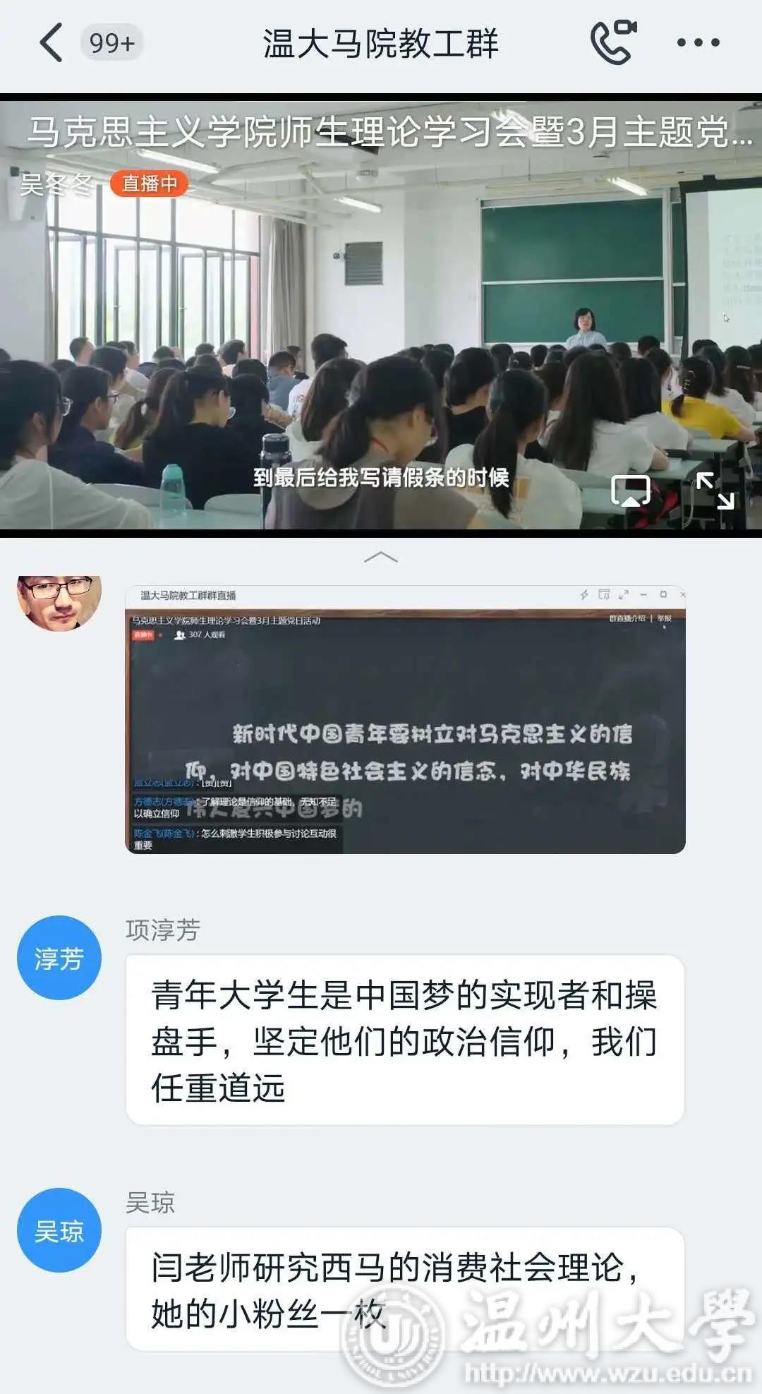 同时,为贯彻落实习近平总书记在学校思想政治理论课教师座谈会上的重要讲话,增强思想政治理论课的思想性、理论性、针对性和亲和力,并结合学校组织部统一部署,学院在3月4日下午以“不见面”形式集中开展理论学习会暨“抗疫情、促发展、当先锋”支部主题党日活动,集体观影《一堂思政课》,深入开展新时代思政课改革创新大讨论活动。
