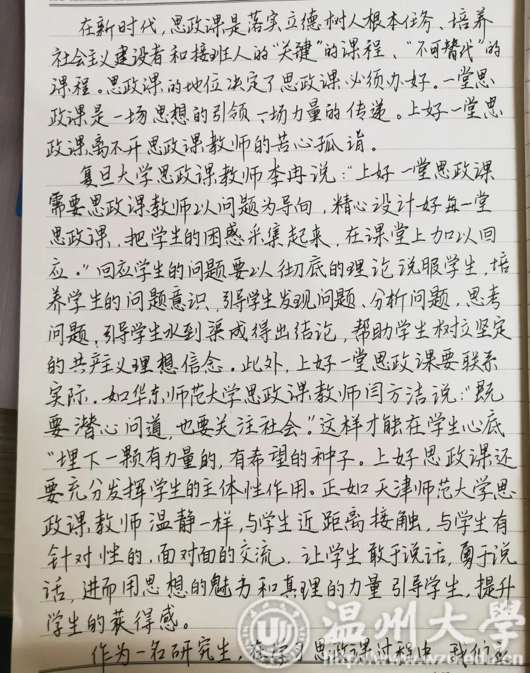 新时代的思政课需要通过思政教育的平台,帮助青年人树立正确的价值观,激发其跳出小时代、施展大作为的奋斗热忱。如何上好今天的思政课,是一道必须回答好的时代课题,也是作为马院学子必须思考的问题。