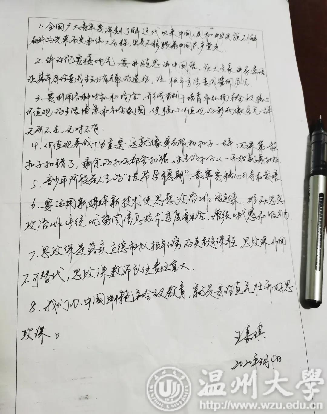 思政课教师要以理服人、以德感人、以爱育人。对学生要用心、用情,真正关心、尊重学生。上好思政课要有理论、有趣味。讲解课程要有深度,让学生信服。对后备人才要加大扶持力度。