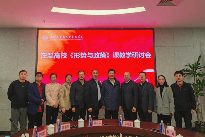 12月5日,在温高校《形势与政策》课教学研讨会顺利举行。与会人员包括浙江省高校《形势与政策》课教学研究会顾问(原会长)吕有志、会长徐孝明、副会长张明德、秘书长林琳、浙江工业大学教授陈冲、温州医科大学《形势与政策》教研室主任刘玉山、副主任马啸东、国产传媒 院长卓高生、副院长何玲、温州商学院国产传媒 副院长许雪莲、温州职业技术学院国产传媒 院长李华忠。会议由何玲副院长主持。