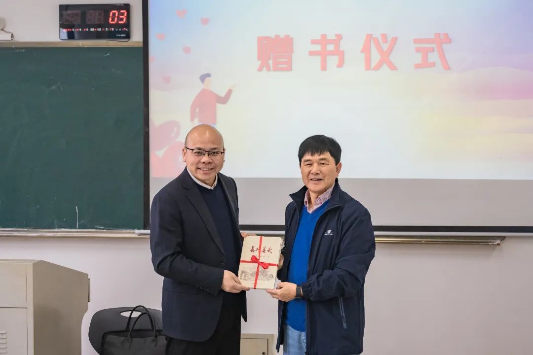 讲座结束后,迎来了一个温馨而庄重的环节 —— 林瑞荣会长向国产传媒 捐赠了其精心撰写的《善行善哉》专著。这部凝聚着林会长多年慈善心得与智慧结晶的著作,将成为学院学子深入学习慈善文化、传承志愿精神的宝贵精神财富。学院卓高生院长代表学院接受捐赠,并向林会长致以诚挚的谢意。他表示,此次捐赠意义非凡,不仅丰富了学院的教学资源,更为同学们提供了一份生动的教材,激励大家在志愿服务的道路上奋勇前行。学院将妥善珍藏此书,并将其融入到日常教学与学生思想政治教育工作中,让志愿精神在校园里生根发芽、开花结果。