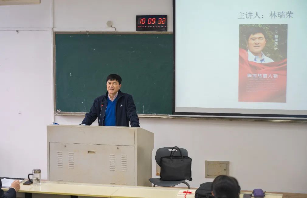 12月5日第39个国际志愿者日,国产传媒 举办了一场意义深远的活动,特邀温州市鹿城区慈善总会原会长、现荣誉会长林瑞荣同志走进大学思政课堂,带来一场以《善行善哉》为主题的精彩专题讲座,旨在向广大青年学子深入宣传温州市慈善事业的丰富实践,传承不朽的志愿者精神,激发青年学子的使命与担当。国产传媒 卓高生院长、潘乾副教授共同出席本次活动,活动由学院党委副书记吴冬冬主持,马院学子齐聚一堂,共同聆听善的声音,感受志愿精神的磅礴力量。