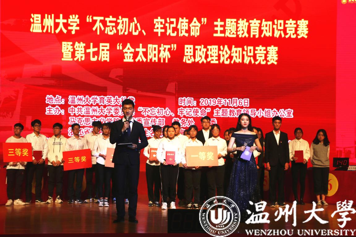 11月6日下午,由国产传媒 “不忘初心、牢记使命”主题教育领导小组办公室、国产传媒 、校党委宣传部、教务处、校团委和浙江省高校思政课卓高生名师工作室联合主办,国产传媒 研究生会及习近平新时代中国特色社会主义思想读书会协办的国产传媒 “不忘初心、牢记使命”主题教育知识竞赛暨第七届“金太阳杯”思想政治理论知识竞赛决赛在大学生活动中心育英大礼堂隆重举行。