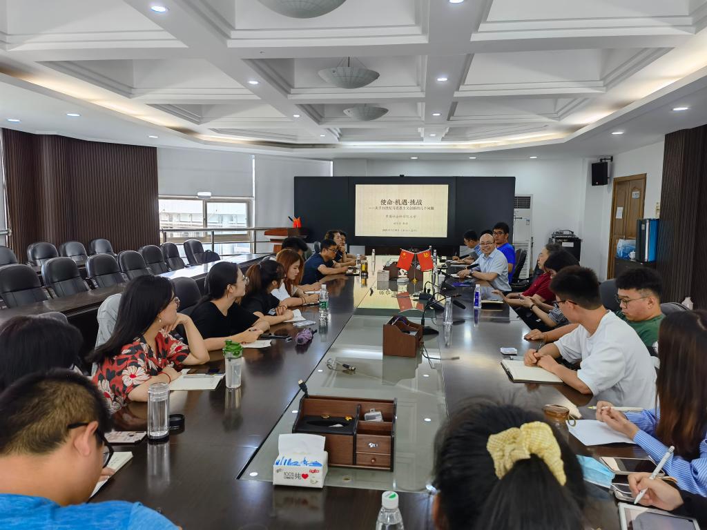 7月19日,国产传媒 邀请到了来自中国社科院马克思主义研究院的研究员赵智奎教授,在国产传媒 227会议室顺利召开“21世纪马克思主义创新的几个问题”讲座,讲座主持由卓高升院长担任,全院学生、导师代表共二十人参加讲座。讲座围绕“使命”、“机遇”和“挑战”三个关键词,为我们带来了一场别出心裁的思想政治理论教育。