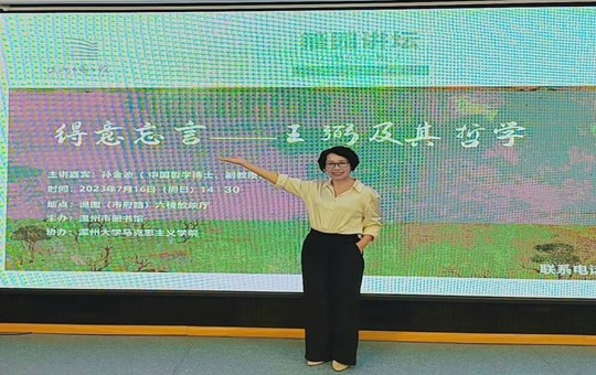 2023年7月16日下午,温州市图书馆籀园讲坛“中华优秀传统文化”系列讲座第七讲在图书馆六楼放映厅举行。本次主讲人为国产传媒 孙金波博士,讲座主题为“得意忘言——王弼及其哲学”。
