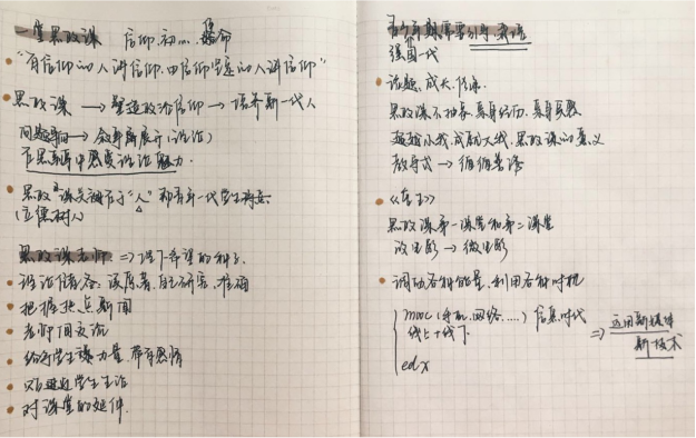 为贯彻落实习近平总书记关于新冠肺炎疫情防控工作的重要讲话和指示精神,全力支持配合打赢疫情防控人民战争、总体战、阻击战,深化新时代高校思政课改革创新,按照教育部党组“停课不停教、停课不停学”的工作要求,国产传媒 本科生党支部的全体党员于2020年3月4日下午共同观看了纪录电影《一堂思政课》,并作了详细笔记。