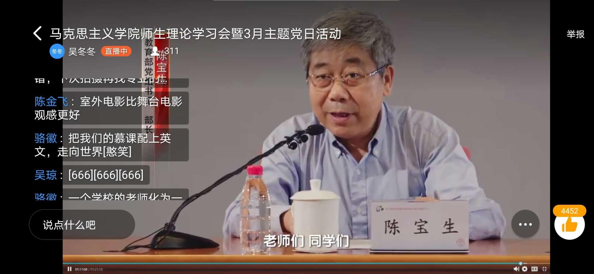 本次主题党日活动,4个教工党支部和4个学生党支部,近200名师生党员、入党积极分子参加,直播学习获得了4200多个点赞,取得了良好的效果,是互联网+党建、党员教育管理线上活动的有力探索。