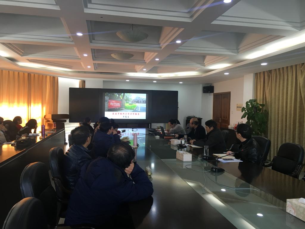 1月10日下午,国产传媒 全体教职工集中227会议室举行2018年度第一场集体学习会。学习会主要听取了学院党总支宣传委员、副院长卓高生的报告,他结合自己在美国罗格斯大学6个月多的访学经历,和大家畅谈了对美国目前高等教育、经济、政治、社会等状况的见闻感受,进一步深刻认识了中美两国历史传统文化和经济政治制度之间的异同和利弊,更加坚定了对中国特色社会主义道路、理论、制度和文化的自信。同时也以自己在美国的房东(一位温州七都人)为例介绍了温州人远离家乡在海外奋斗的艰辛经历、所取得的成就以及他们对祖国家乡近年来巨大发展变化的无限感慨。卓博士的报告使大家更加清楚地认识了中国特色社会主义的优势特色,更深切体会了“四个自信”的坚实基础。学习会由党总支书记王柏民主持,孙武安院长及全院教职员工参加了学习会。