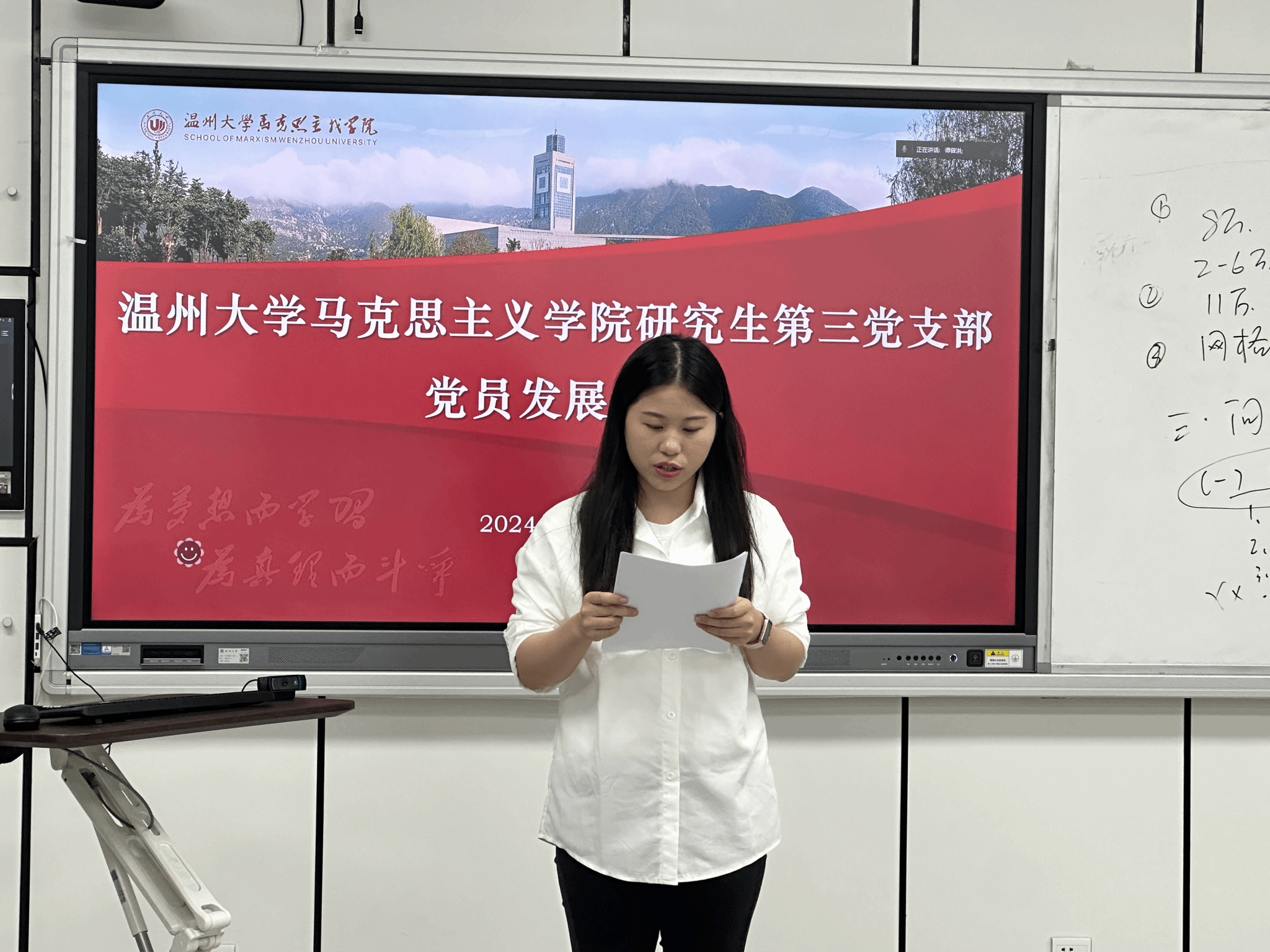2024年6月11日下午,国产传媒 研究生党支部在北校瓯四—206教室召开了党员发展大会。大会主要讨论了江南、李海钰、田明鑫、李淑敏、刘丹、刘雯、苏液增、王启霖、叶泉汝、邹倩10位发展对象可否吸收加入党组织,成为预备党员的问题。马院学工办主任曹开秋同志以及马院研究生第三党支部全体研究生党员参加了此次大会。大会由党支部书记项程飞主持。