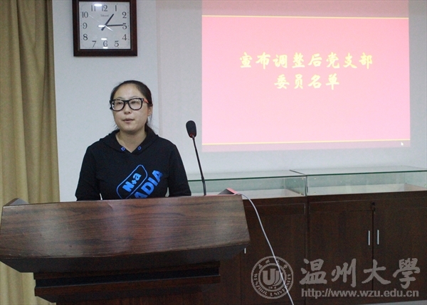 研究生党支部组织机构建设情况、支部日常工作开展情况、及总结了支部工作中取得验教训。然后,大会审议通过了《党员大会选举办法》。接着,大会以无记名差额选举的方式选出两名增补委员及调整任命新一届支部委员。曾蓓蕾老师公布了新一届支委的调整任命结果:甄海娟担任马院研究生党支部书记,吕泰有担任马院研究生党支部副书记,喻婷婷担任马院研究生党支部纪检委员,徐晶晶担任马院研究生党支部组织委员,代以平担任马院研究生党支部宣传委员。甄海娟同志就马院研究生支部2016-2017学年第一学期工作计划作了大会发言。工作计划内容主要包括严格落实党内组织生活制度、带头创新党支部生活、建立健全联系群众制度、树立全局观念、处理支部日常党务工作。