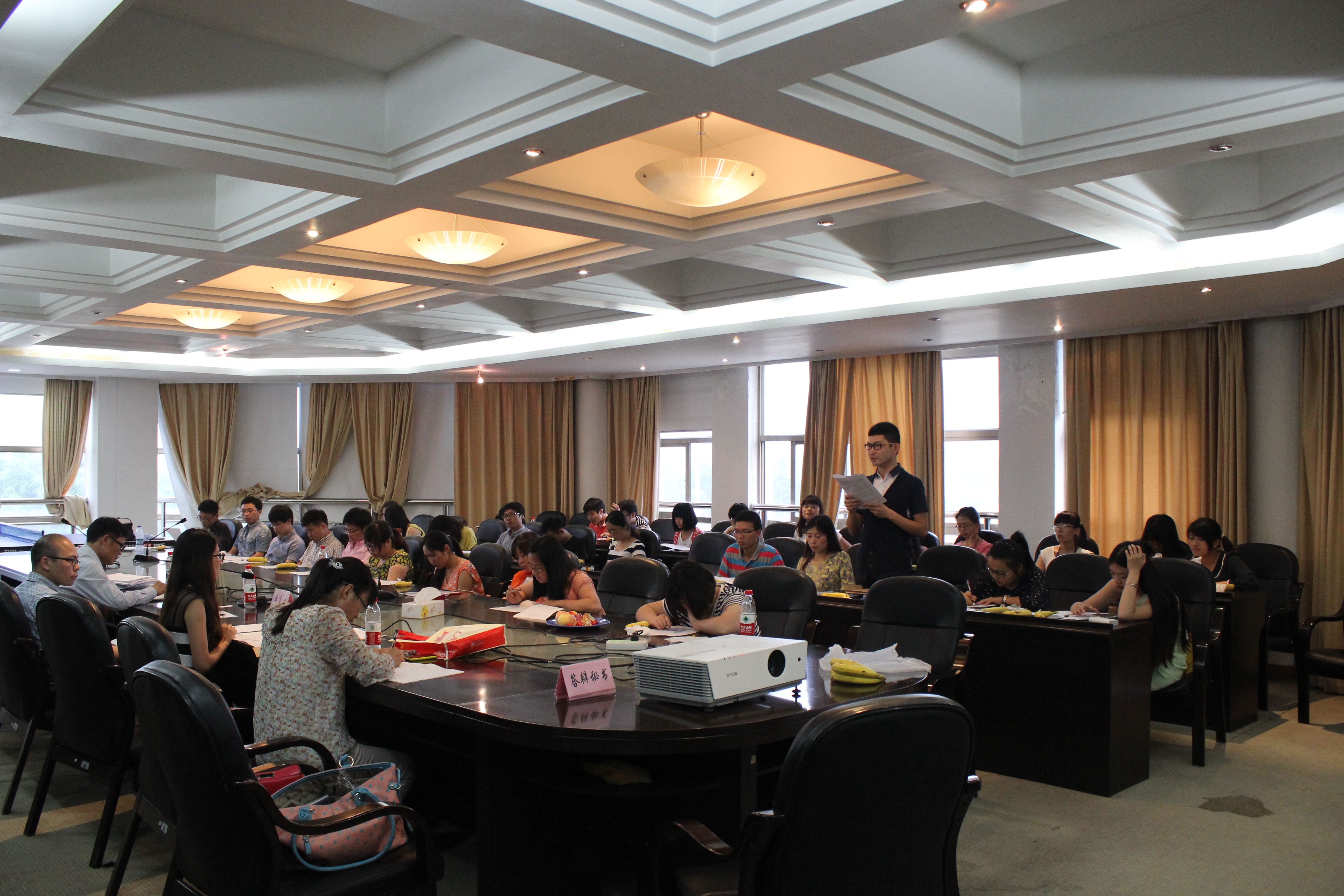 2014届毕业研究生党员教育大会和校友工作座谈会在北校行政楼227会议室举行。会议由研究生党支部书记杨洁同志主持,学院副院长卓高生与办公室主任赵崇峰、教研科副科长冯晓燕老师,全体毕业生和一二年级党员参会。
