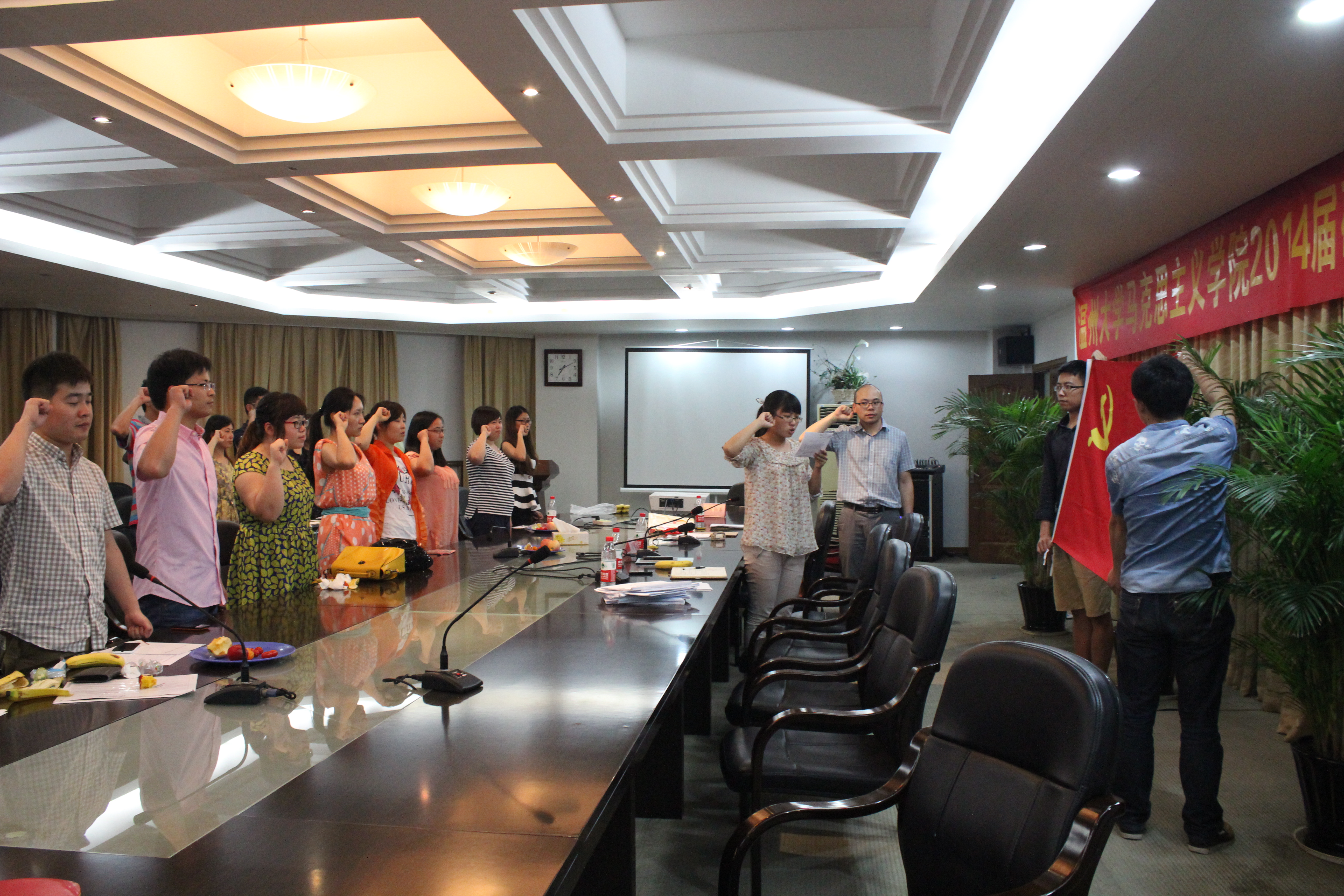 本次会议吸收了尹君龙、梅长青、戴顺等三位同志为中共预备党员。全体党员面对党旗重温了入党誓词。
