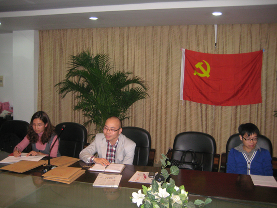 2011年11月9日晚6点10分,在北行政楼227会议室,研究生党支部大会准时召开。参加会议的有卓高生老师和全体研究生党员。会议由研究生党支部宣传委员付映杰主持。