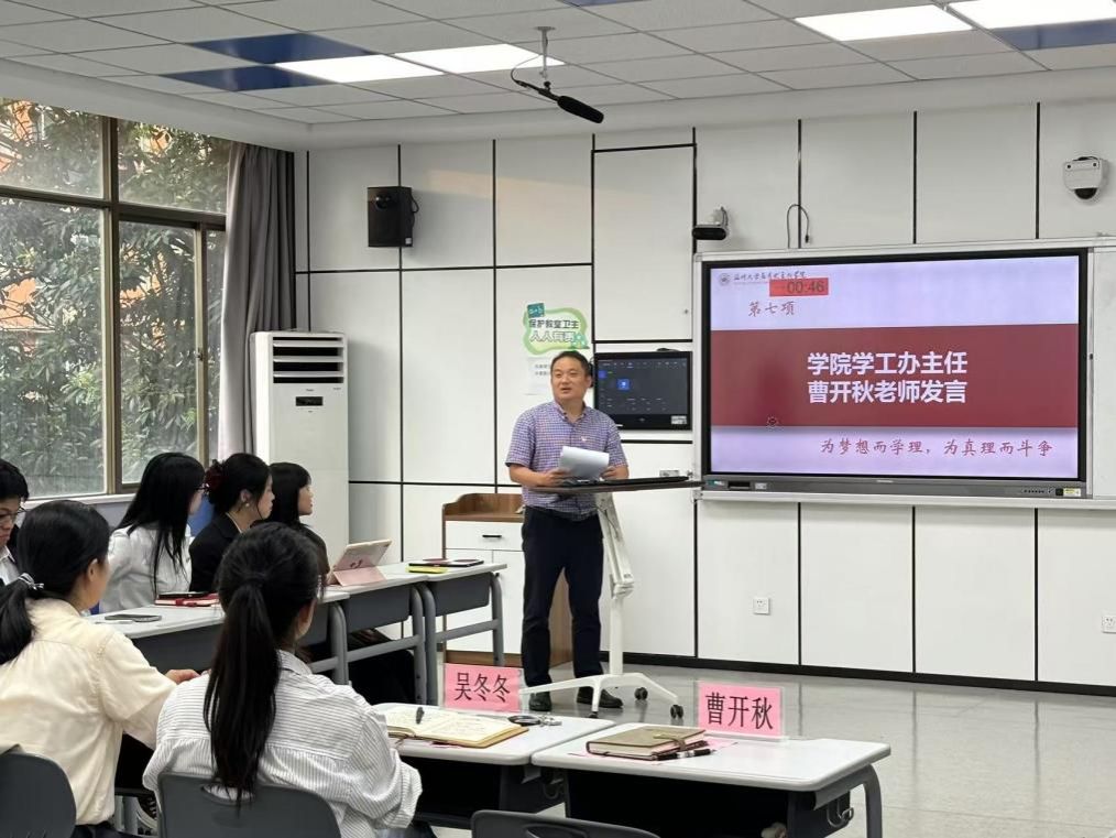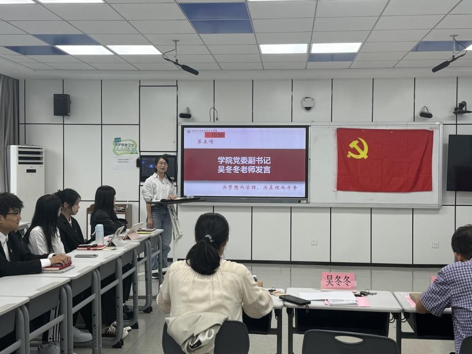 最后,学工办主任曹开秋老师明确党支部的主导地位和引领作用,肯定国产传媒 研究生第二党支部党员们的个人经历,希望党员同志们不负众望,加强学习,以身作则。学院党委副书记吴冬冬老师强调党支部是党的基础组织,提出党支部建设要对标“七个有力”,即党员工作的教育、管理、监督要有力和师生工作的组织、宣传、凝聚、服务要有力,并感谢上一届支委的辛苦付出,鼓励新一届支委多向上一届支委学习党务工作,着力发挥好党员先锋模范作用,充分发挥党组织的政治核心和战斗堡垒作用,以旗帜示范引领全体学生,携手共建更加优秀、更具特色、更有活力的党支部。