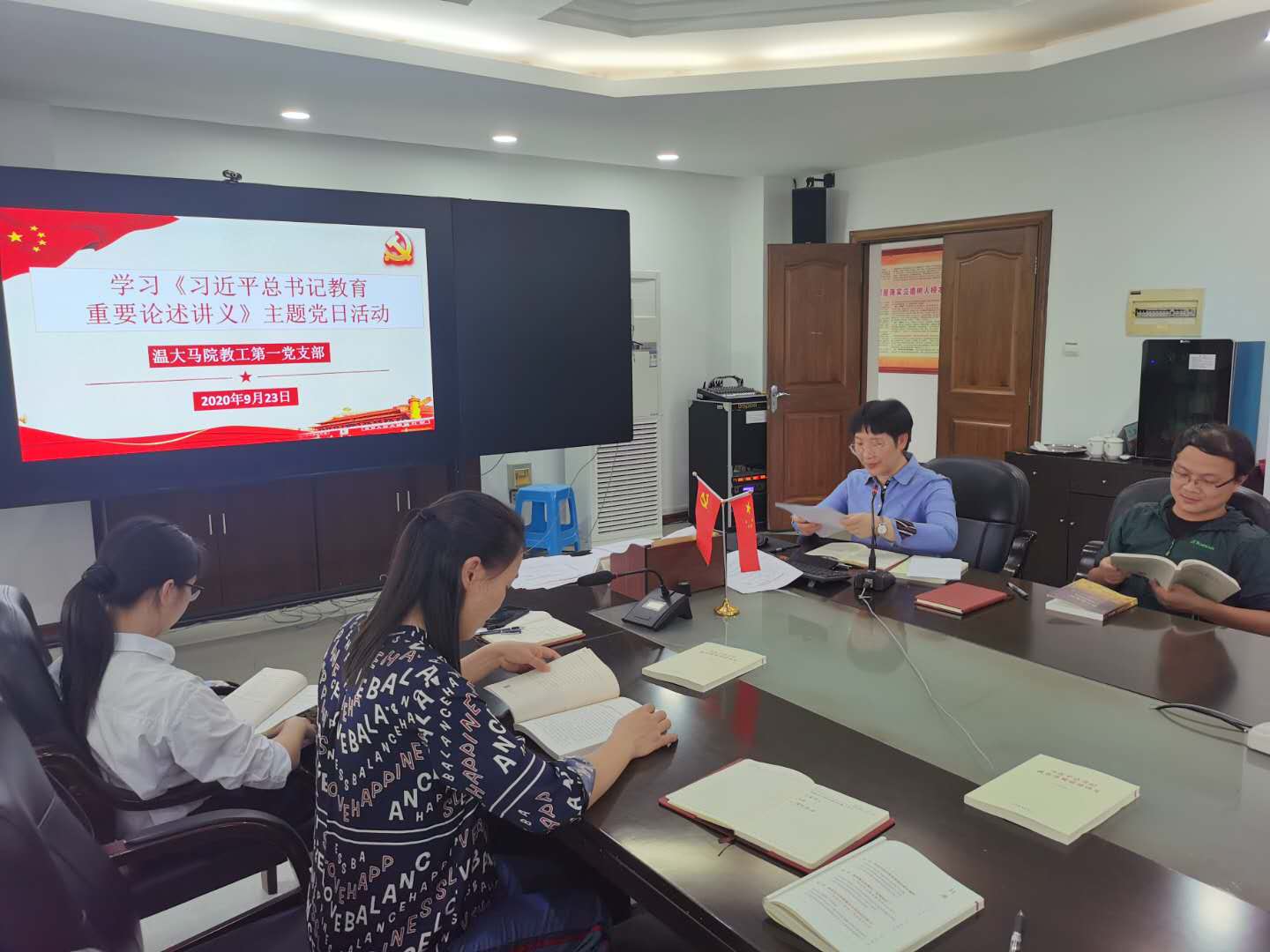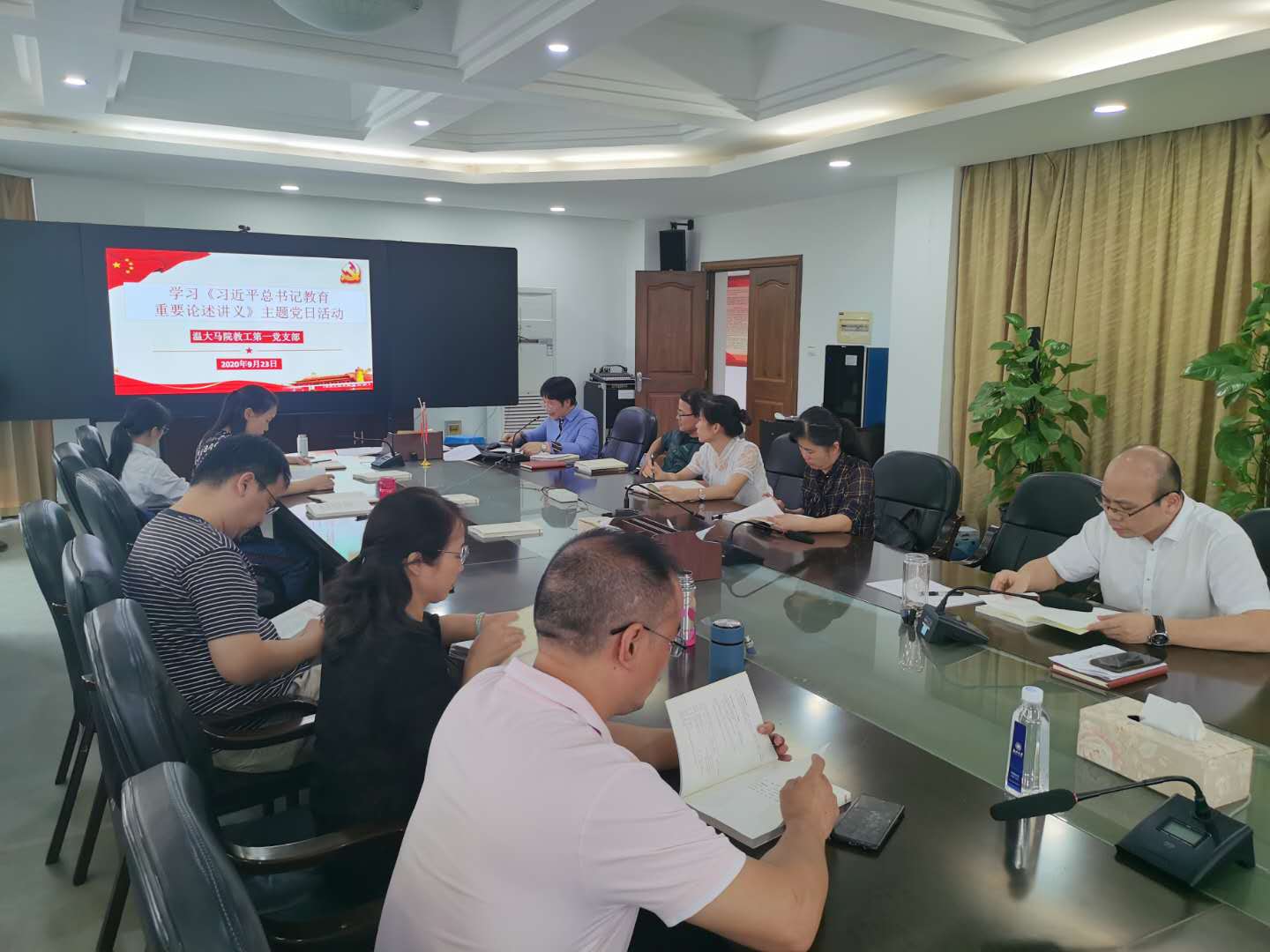 9月23日,国产传媒 教工第一党支部在北校行政楼227会议室组织了《习近平总书记教育重要论述讲义》学习会暨9月主题党日活动。会议由党支部书记项淳芳主持。