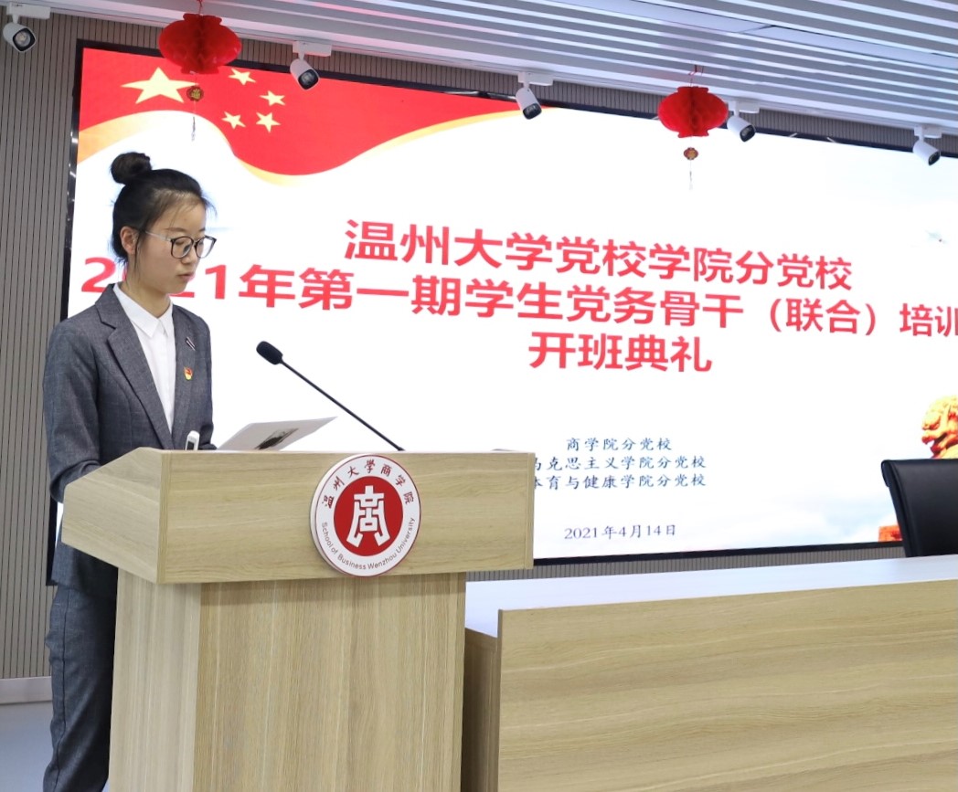 为进一步提高学生党员骨干的综合素养,增强学生党员骨干对发展党员流程的清晰认知,确保各学生党员骨干在发展党员过程中能够明确自身责任和定位,增强党组织对学生党员骨干的凝聚力,中共国产传媒 委员会党校学院分党校于2021年4月14日在商学院A226会议室举行了2021年第一期学生党员骨干培训班的开班典礼。出席本次开班典礼的有商学院分党校校长郑彩莲、国产传媒 分党校校长王柏民、体育与健康学院分党校校长应中、各学院党建负责老师以及全体74名学生党员骨干。本次典礼由商学院学生党建负责老师聂海燕老师主持。