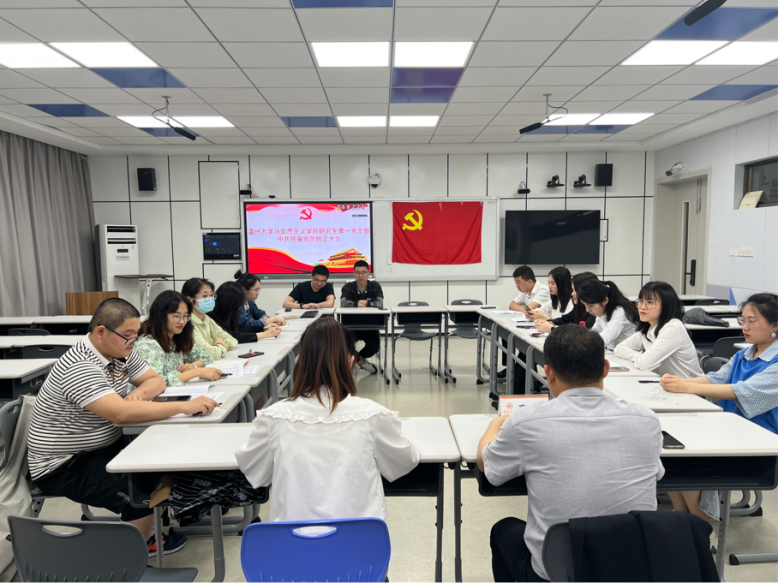 2022年5月27日晚,国产传媒 研究生第一党支部于北校瓯4-204教室召开中共预备党员转正大会,学院学工办主任曹开秋老师莅临指导,会议由党支部书记唐清春主持,党支部全体党员与预备党员通过线上和线下相结合的形式参与会议。