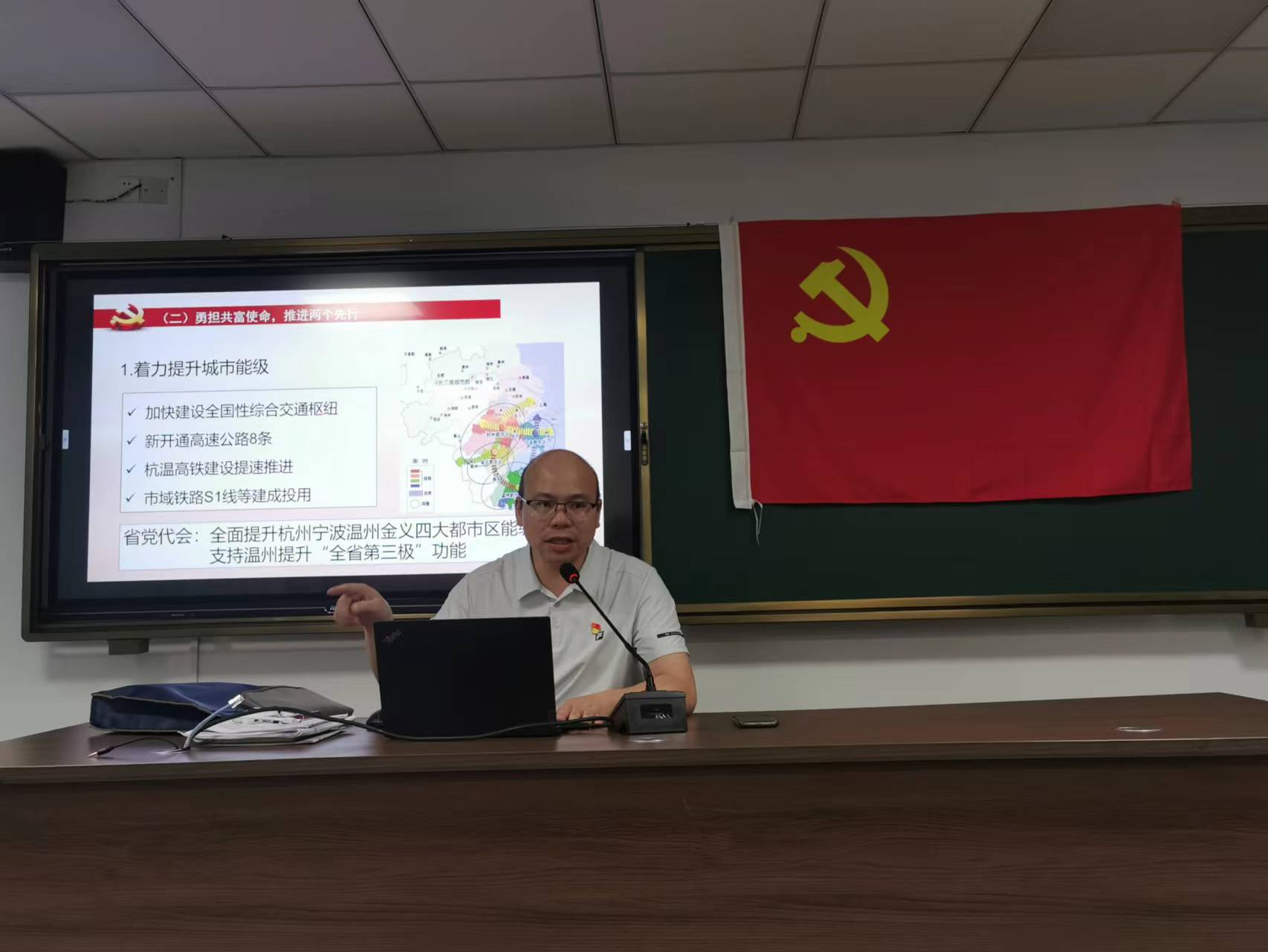 为深入学习贯彻省党代会精神和响应温州市委组织部《关于以“奋进‘两个先行’ 当好开路先锋”为主题深入开展“红七月·服务月”活动的通知》《关于以“当先锋、争先行”为主题集中开展支部主题党日活动的通知》的要求,国产传媒 教工第一党支部于7月5日晚在浙江省委党校平阳分校教学楼202教室召开“学习省党代会精神 推进样板支部建设”支部党员大会暨“当先锋,争先行”主题党日活动,会议由支部书记项淳芳同志主持。