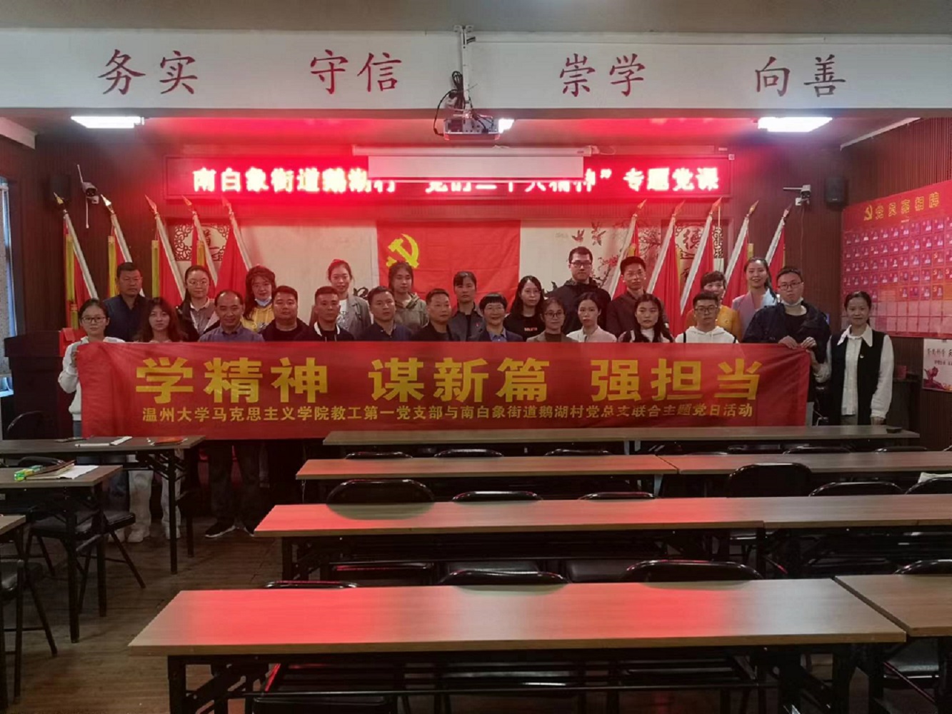 为深入学习贯彻宣传党的二十大精神,充分发挥党支部理论宣传重要阵地作用,2022年11月18日下午,国产传媒 教工第一党支部书记项淳芳带领支部党员、国产传媒 研究生部分党员和发展对象学员们一起走进南白象街道鹅湖村,与鹅湖村联合开展“学精神、谋新篇、强担当”主题党日活动。