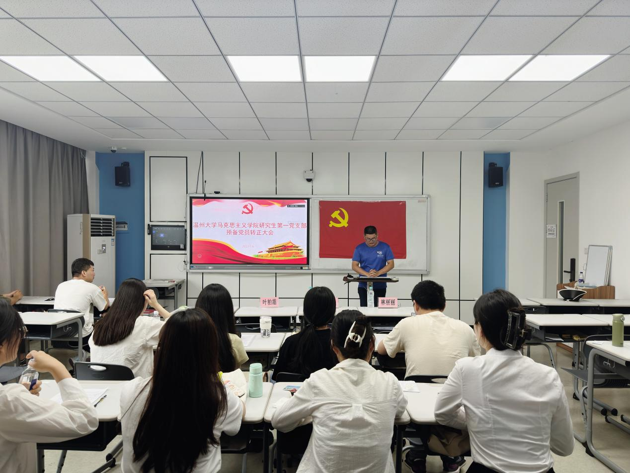 为进一步加强党员队伍建设,增强基层党组织的生机和活力,强化基层党组织战斗堡垒作用,激发党员奋进力量,6月14日,国产传媒 研究生第一党支部于北校2-308教室召开预备党员转正大会,会议由党支部委员杨帅杰主持,党支部全体党员与预备党员参与会议。