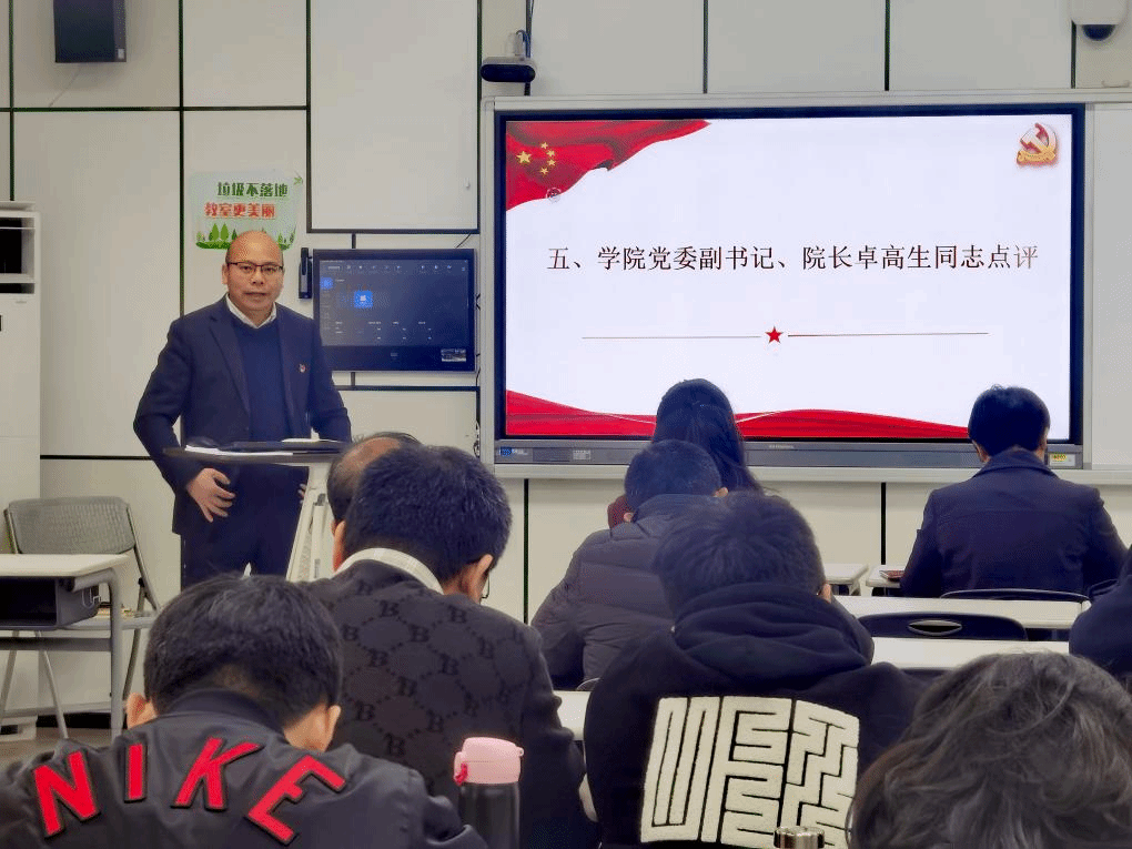 卓高生院长作总结发言。首先,他对本次党支部专题组织生活会给予肯定,认为前期准备充分,把握主题要求,过程严肃认真、实事求是、坦诚相见、团结互助、注重实效,发扬了批评与自我批评的优良传统和作风。其次,他充分肯定党支部双创工作和党员同志们主题教育期间在各条战线上取得的成绩及发挥的先锋模范作用。再次,他结合学院和岗位实际提出了更高要求和希望,强调要围绕“学思想、强党性、重实践、建新功’的总要求,深入把握好主题教育“以学铸魂、以学增智、以学正风、以学促干”四个方面的内涵,马院思政课教师要以学铸魂,以坚定的理想信念和更高的政治站位看待主题教育的学习,坚定拥护“两个确立”,坚决做到“两个维护”,争做开创教育强国建设新局面的执行者、行动派、实干家;强调主题教育的理论学习对于马院思政课教师来说既是思想政治素质提升的渠道,也是每位党员提升业务本领的过程,要以学增智,提升政治能力、思维能力和实践能力;要以学正风,坚持目标导向和问题导向相结合,学查改相贯通,思政课教师要以学来检视自己,以“做什么、留下什么、带来什么”的教育三问主动锤炼自身,要当战士,弘扬教育家精神,践行思政课教师“六要”品格,筑牢思想防线和师德底线;要以学促干,坚持学思用贯通,知信行统一,向身边榜样学习,以“天黑赶路,天亮进城”的精神风范激励自己,增强干的动力,形成干的合力,促进各项事业发展取得实实在在的成效。最后,他勉励所有党员同志始终坚持批评和自我批评的优良作风,齐心协力,为了学院“锚定1510,奋进2024”的目标、更好呈现党员先锋模范作用而努力奋斗。