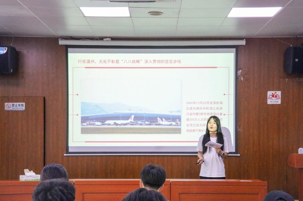 活动现场,国产传媒 “小马”实践队以独特的创意和贴近青年的方式,将“八八战略”的辉煌成就与乡村巨变巧妙融合,为温州医科大学的青年朋友们打造了一场穿越时空的“理论之旅”。实践队成员周意涵巧妙运用“时光机”概念,邀请青年们一同回顾历史,感受发展的脉搏,让宏大的理论变得生动可感。
