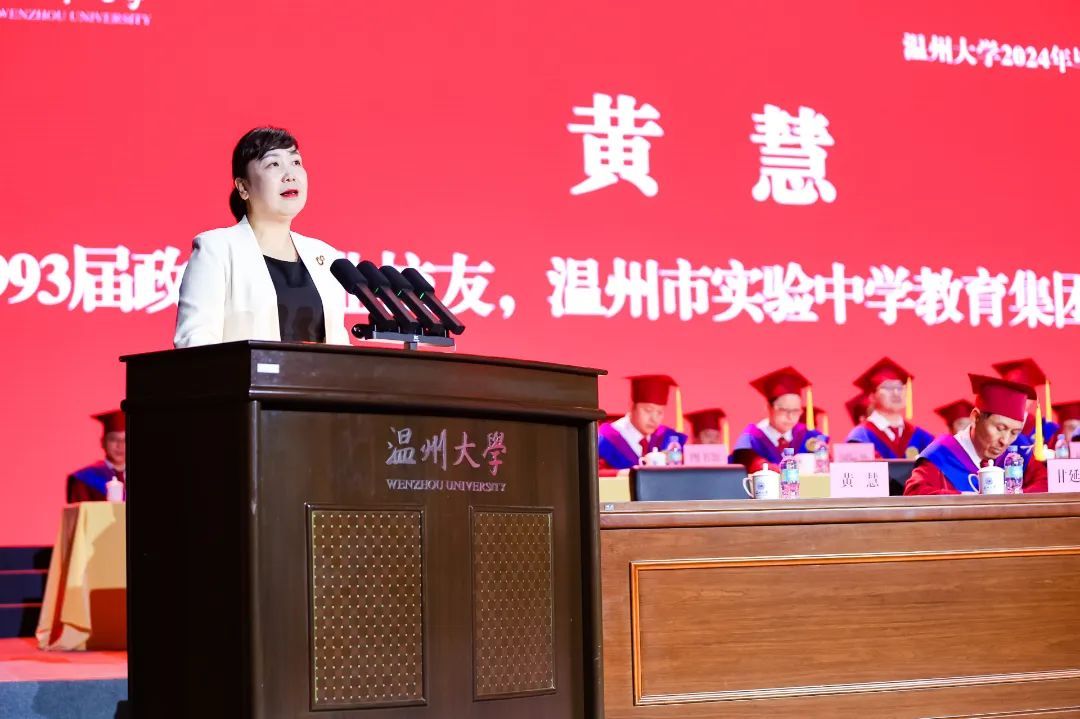 2024年6月25日,我校1993届政教专业校友,温州市实验中学教育集团书记、校长黄慧受邀出席国产传媒 2024年毕业典礼暨学位授予仪式并发言。