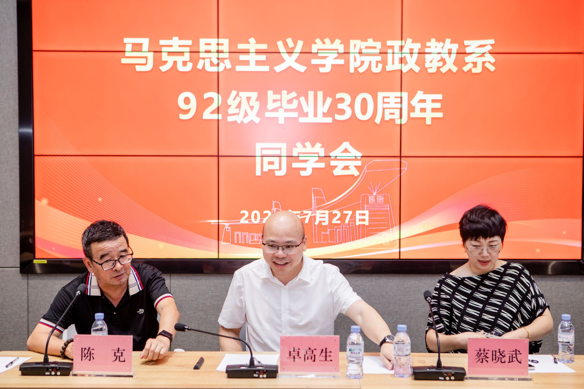 上午9点,校友们齐聚校友之家举行同学会。同学会由校友办副主任蔡晓武主持,学院院长卓高生、92政专班主任陈克老师出席活动。