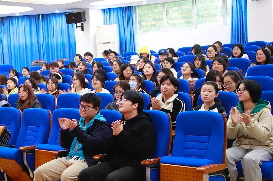 孙有新校友围绕“学做幸福的思政教师:班主任”主题展开,以幸福班主任的修炼为主线,分享了自己几十年的班主任工作经验。他指出,要想成为一名幸福的班主任,要学会修炼一颗纳悦的心、掌握专业写作技能、凝练教育教学风格。孙有新校友就培养悦纳的心给出了三点建设性建议:悦纳我们的工作、悦纳“问题生”、降低幸福的沸点。在专业写作技能上,孙老师坚持通过博客记录和反思班主任工作。孙老师还分享了自己独特的教学风格:幸福教育。从一次改变观念的支教到一封棘手的匿名信,同学们被孙老师的经历深深吸引,会场气氛热烈。大家深刻认识到教学设计、评价与反思的重要性。孙有新校友寄语同学们:“班主任工作是一项幸福的事业,是一项创造幸福、传播幸福的事业,也是收获幸福的事业。”希望同学们能在教育事业上且行且收获,越走越远。