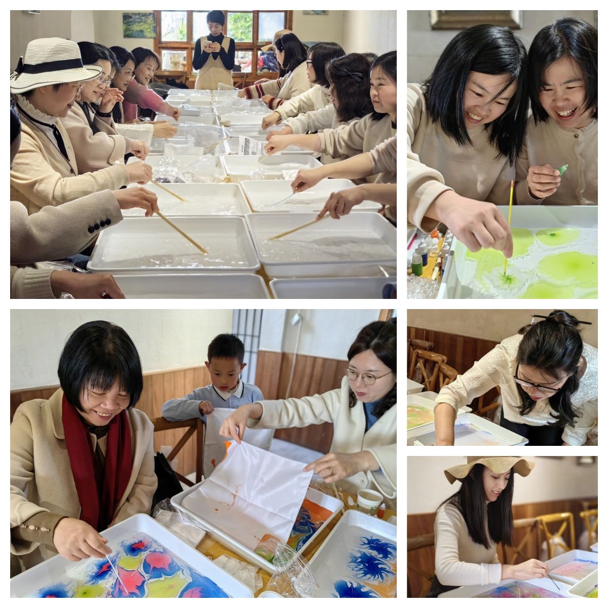 女教师们在专业导师的悉心指导下,深入学习了非遗丝巾制作技艺。大家亲手浸泡丝绸、精心涂抹染料,再到仔细晾晒,每一步都倾注了心血与创意。最终,一条条色彩斑斓、独具匠心的非遗丝巾在手中一一绽放,成为这个节日最美的见证。