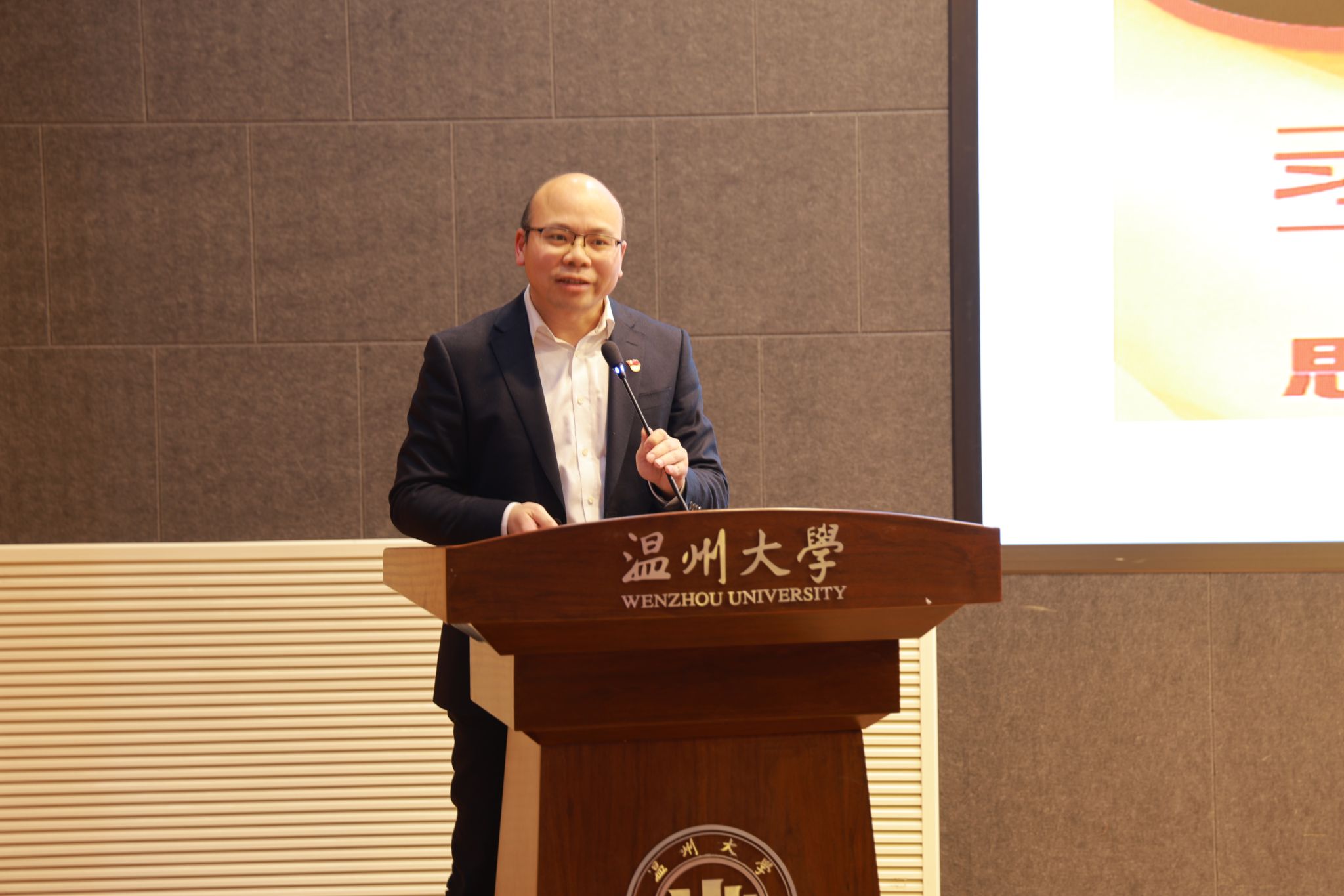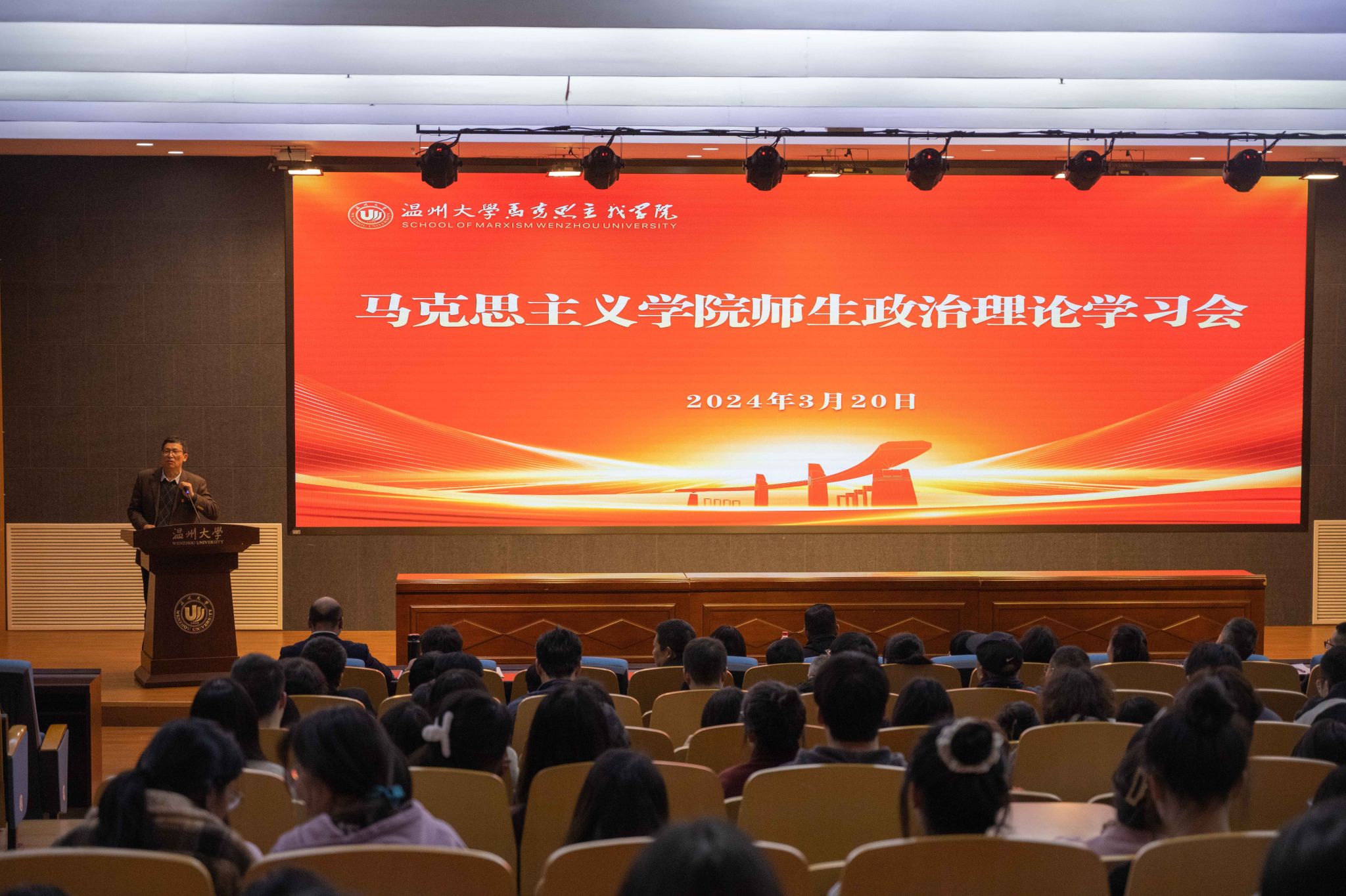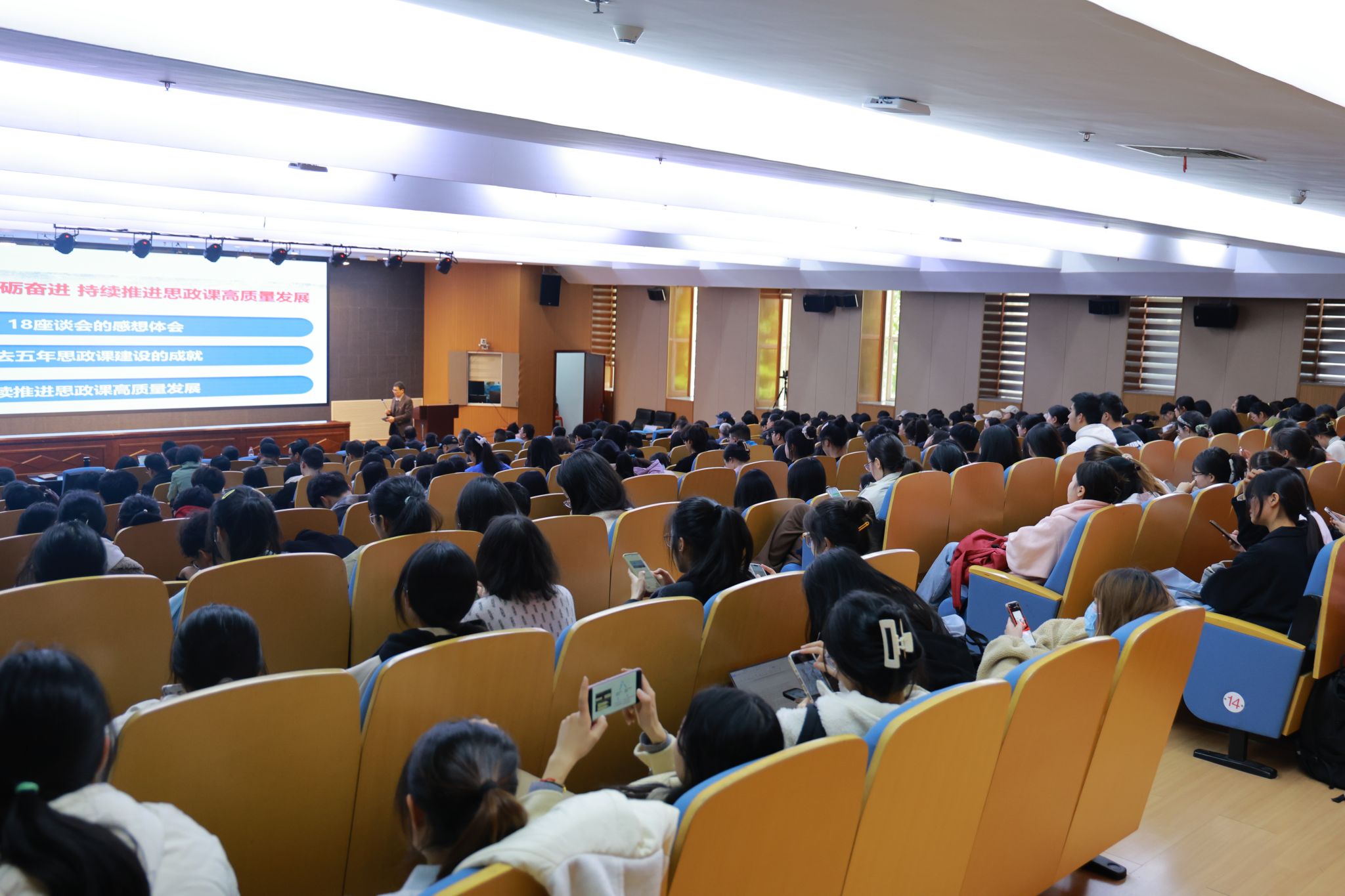 卓高生院长首先向师生们回顾了五年前他前往北京参加思政课教师座谈会的一系列激动难忘的经历,和大家一起分享了习近平总书记对思政课教师的深切关怀和对思政课建设的高度重视。他以“牢记嘱托、砥砺前行——持续推进思政课高质量发展”为题,带领全院师生重温学习习近平总书记“3.18”重要讲话精神,总结了过去五年思政课建设的成就,并聚焦新时代高校思政课高质量发展主题开展深入研讨。他指出,我们的学校思政课要坚决贯彻党的教育方针,有效落实立德树人根本任务,用习近平新时代中国特色社会主义思想铸魂育人,建设思政课“大课堂”、打造思政课“大师资”、加强机制“大保障”。