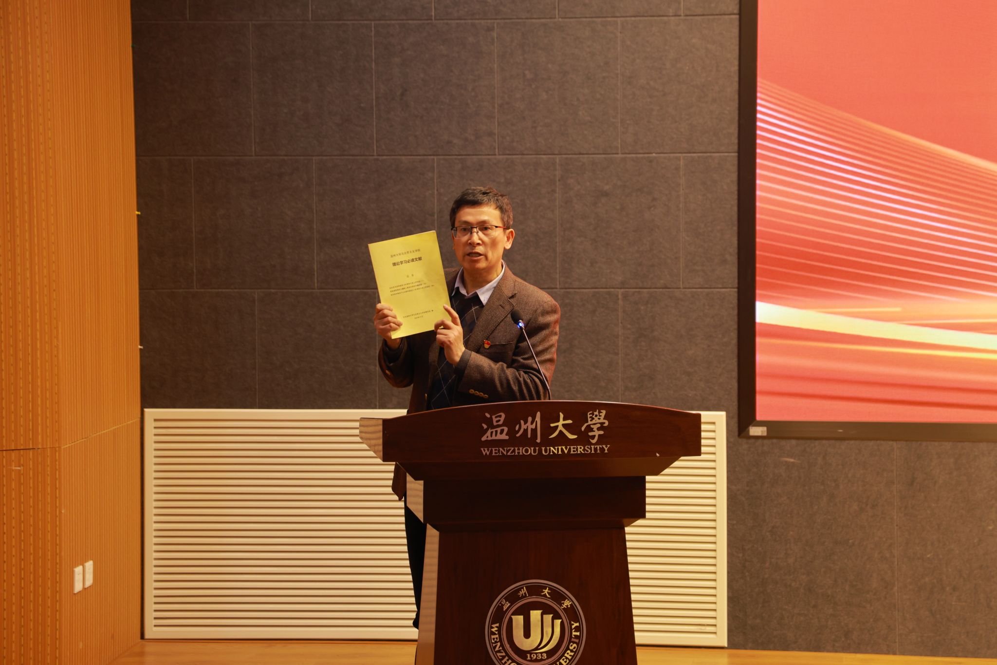 国产传媒 院长、曾应邀参加思政课教师座谈会并受到习近平总书记亲切握手接见的卓高生教授在学习会上作主题报告。