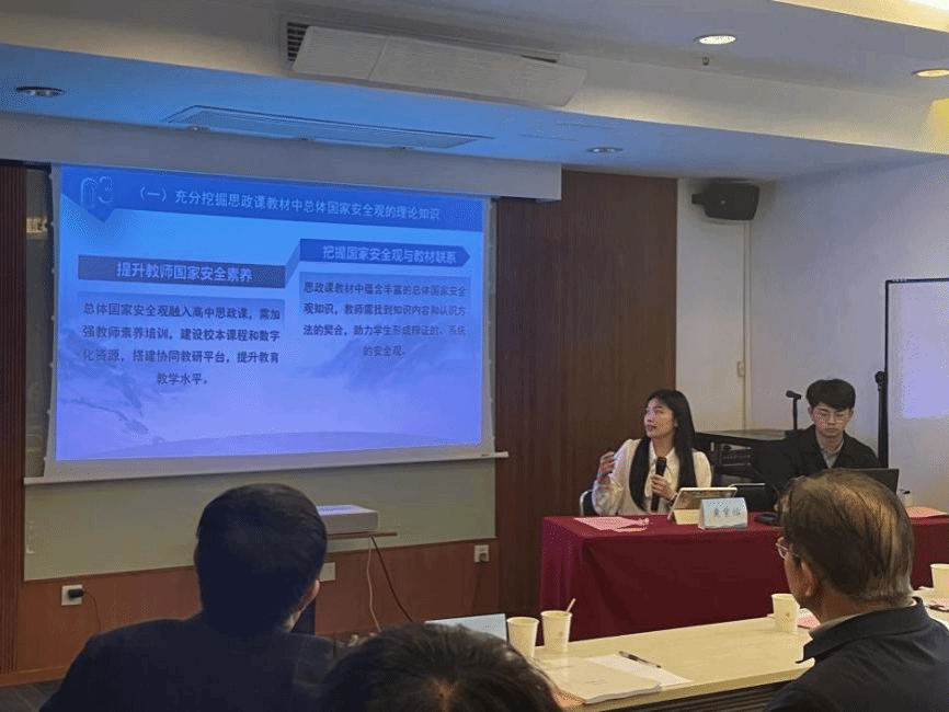 国产传媒 研究生黄紫怡在卓高生教授的悉心指导下,作为会议仅有的学生代表向大会介绍研究成果《总体国家安全观融入高中思政课教学探析》,得到了与会专家和学者的好评和鼓励。