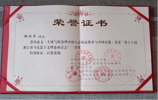 研讨会上,国产传媒 韩跃民老师撰写的《全球气候治理中的生态利益博弈与中国对策》荣获会议征文一等奖,张海波老师、孙武安老师撰写的《习近平生态文明思想蕴含的马克思主义立场观点方法》以及左雪松老师、黄佳佳研究生撰写的《新时代推进国家治理和参与全球治理的共进逻辑》分别荣获会议征文三等奖。