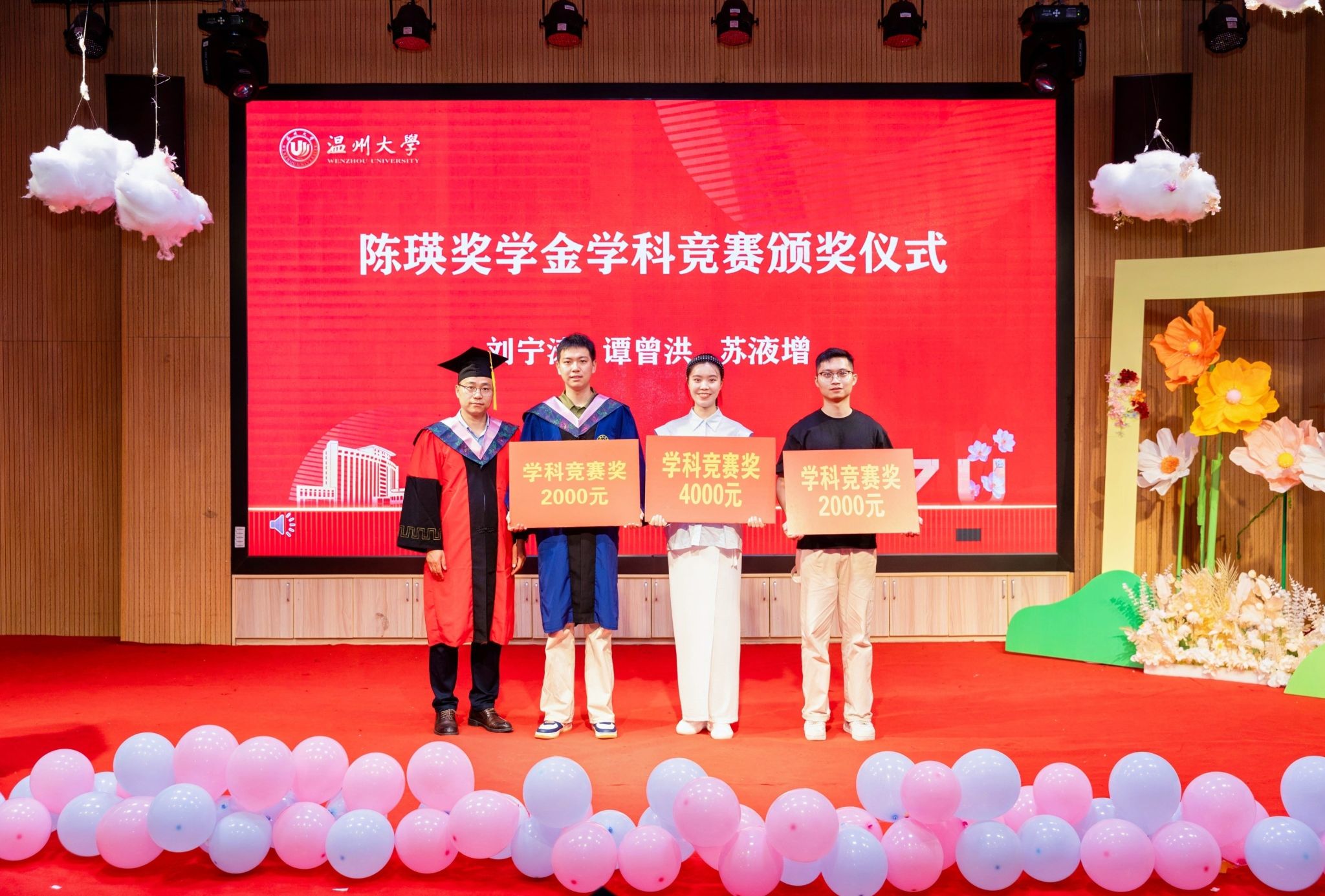 此次陈瑛奖学金设立考研(考博)升学奖、学科竞赛奖、优秀学生干部奖、优秀毕业生奖,由党委书记杨立淮老师、院长卓高生老师、副院长孙邦金老师、副院长何玲老师为获奖学生颁奖。