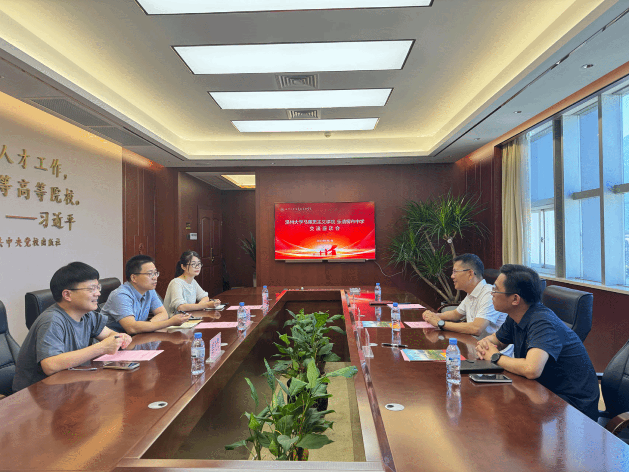 乐清市柳市中学校长沈明武先生对温大国产传媒 的热情接待表示感谢,并介绍了柳市中学发展历史以及现状。柳市中学高度重视本次合作,热烈欢迎温大国产传媒 师生深入柳中进行教学实践活动,将极力为学院学生提供实践教学岗位和实习机会,同时希望国产传媒 能在政治学科方面为我校提供指导和帮助,使我校政治学科教学更上一层楼,助力我校学生和教师成长。