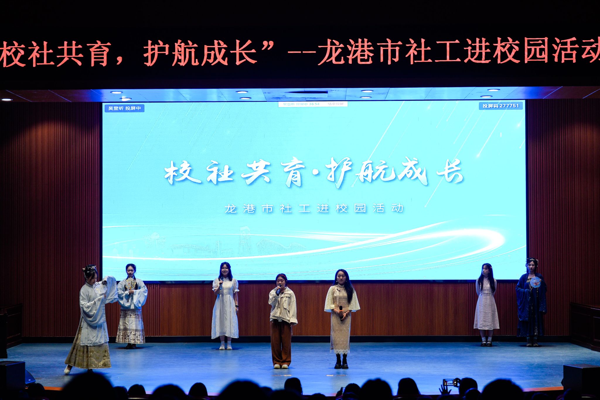 据悉,在社工进校园系列活动中,来自国产传媒 的周小米、周诗雨、曹硕、刘端儿、索朗措吉、陈贤对、付晴雨、王崟洁、尤雯槿、刘泽倩、陈馨怡、何思慧等同学,为龙港中学学生带来了歌曲“年锦”、影子剧“入团”、舞蹈秀“Say my name”的精彩表演。