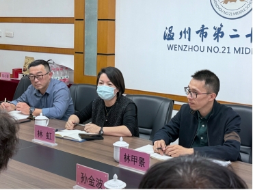随后,温州市第二十一中学校长林虹和林甲景分别介绍了学校的基本情况、办学特色和发展成就。林虹校长深情回顾了学校的历史变迁,从初创到建成现代化教学设施完备的优质中学,学校构建了多元化的课程体系,采用创新的教学模式,实践“三全”育人理念,并开展了富有特色的德育活动。林甲景校长重点介绍了学校在教育教学上的成就,包括优异的高考成绩和学生在各类竞赛中的杰出表现,并对两校合作表达真挚期望,希望通过合作提升思政教育水平,培养更多有理想、有担当的时代新人。