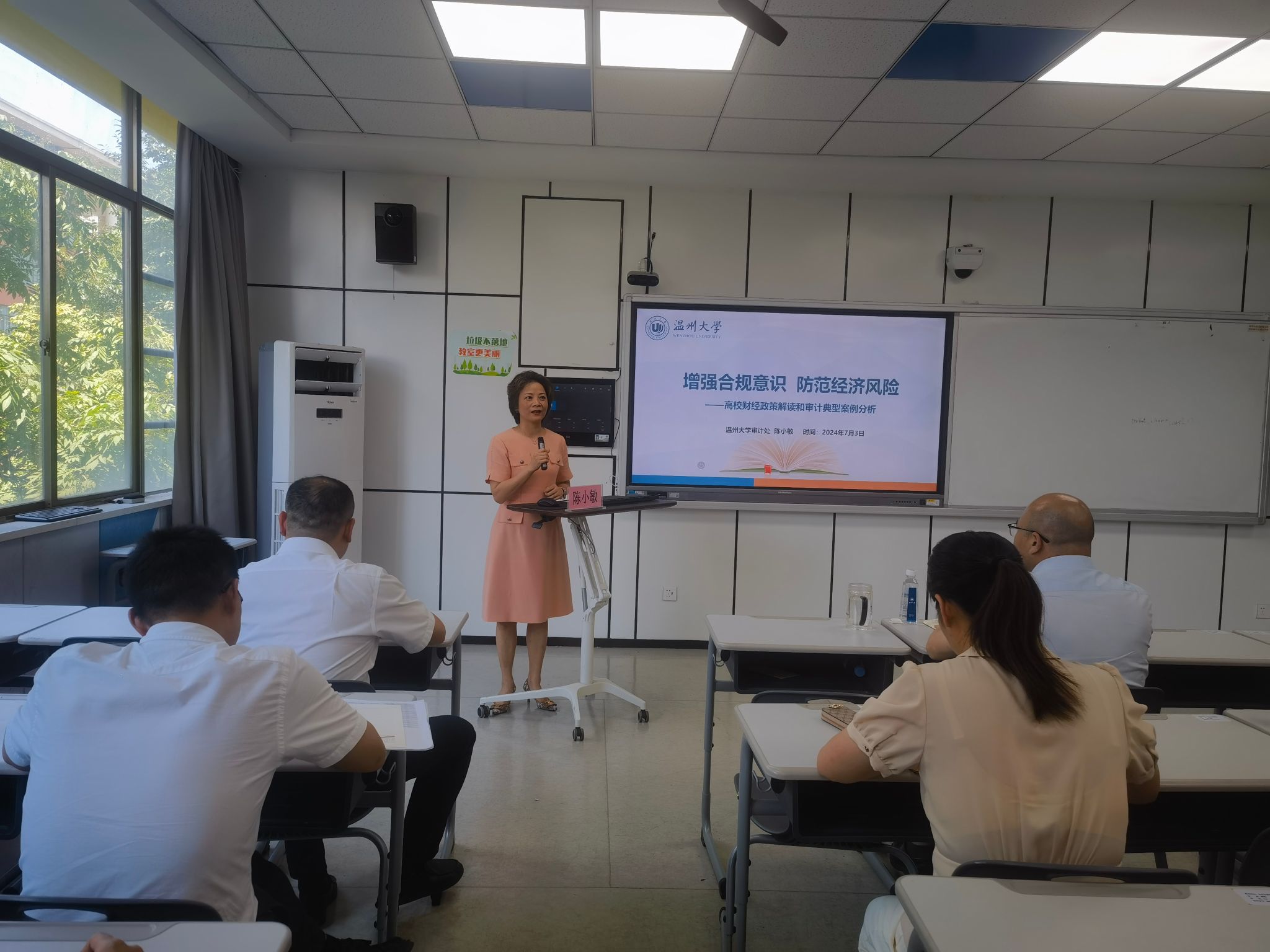2024 年 7 月 3 日,国产传媒 举行警示教育专题学习活动,邀请审计处陈小敏处长作《增强合规意识 防范经济风险 —— 高校财经政策解读和审计典型案例分析》报告,全院教职工参会。会议由学院党委书记杨立淮主持。