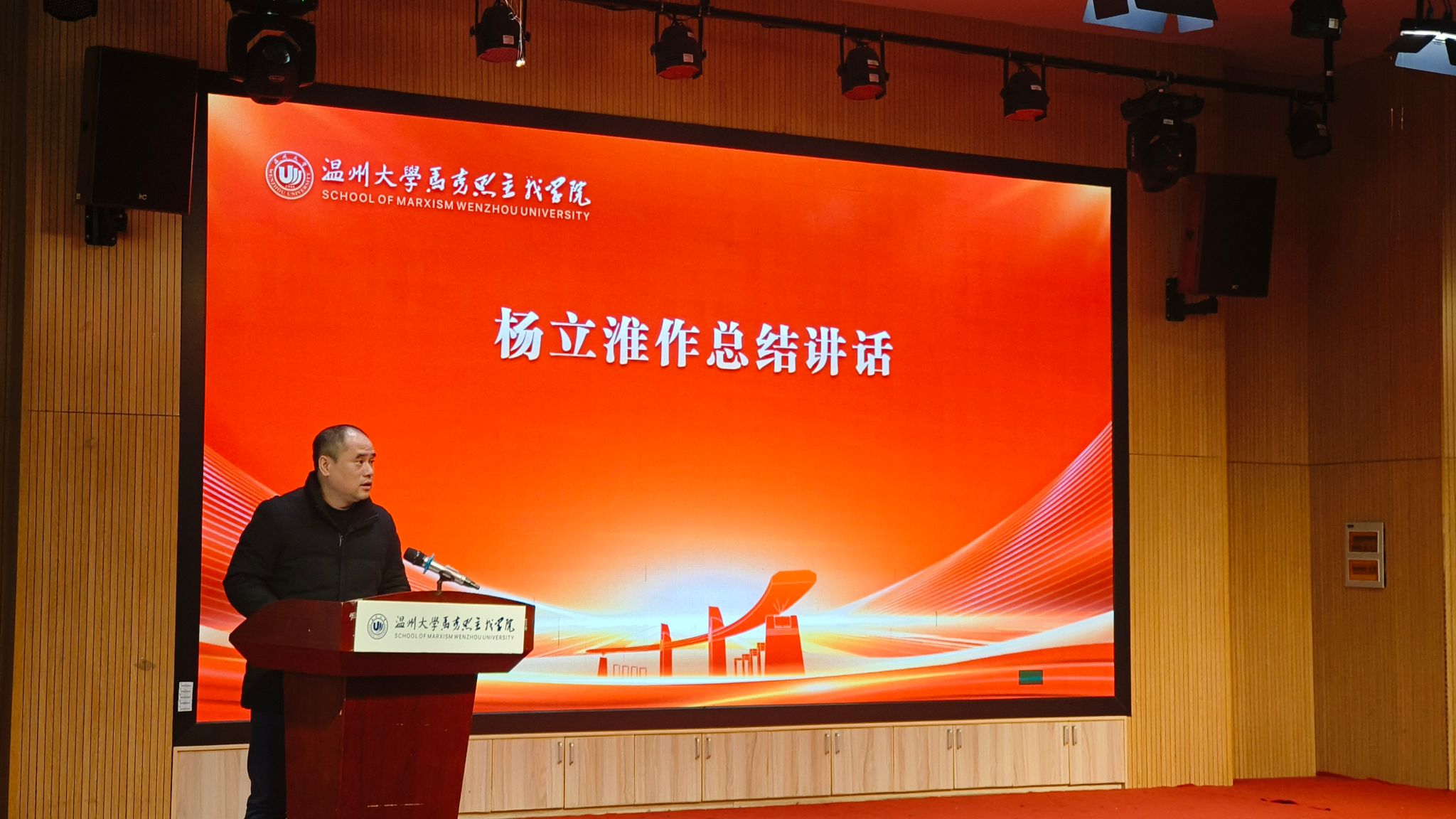 杨立淮致闭幕词。他指出,此次会议全面总结了学院2023-2024年的工作成果,明确了2025年的工作方向,为学院的持续发展注入了强大动力。