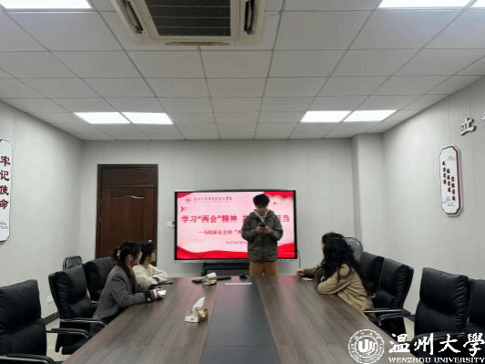 庄一伊同学聚焦政协委员苏华提出的“党的创新理论‘三进’深化路径”,强调“理论体系化需与场景化实践结合”。她以温州市“打造共同富裕示范区市域样板”为例,指出青年应深入红色教育基地与社会实践一线,将理论转化为“可感知”的行动力。黄佳佳同学从马克思主义人民立场出发,剖析两会“民生议题全覆盖”的深层逻辑,提出“民生改善需以需求为导向,以制度创新为保障”,倡议将学术成果延伸至社区服务,助力基层治理效能提升。