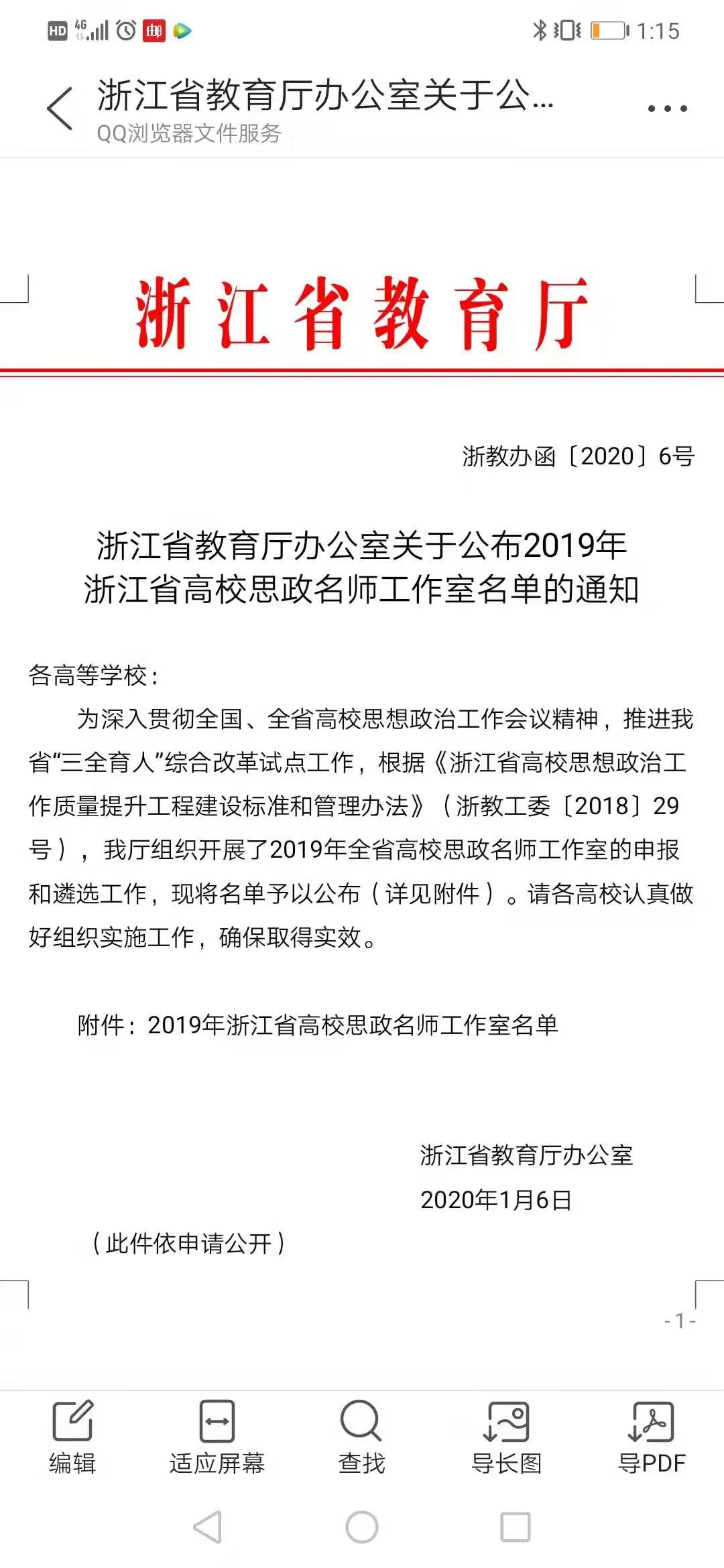 近日,浙江省教育厅办公室下发《关于公布2019年浙江省高校思政名师工作室名单的通知》(浙教办函〔2020〕6号),国产传媒 副院长孙邦金教授和外国语学院姜海燕书记申报的工作室成功入选。