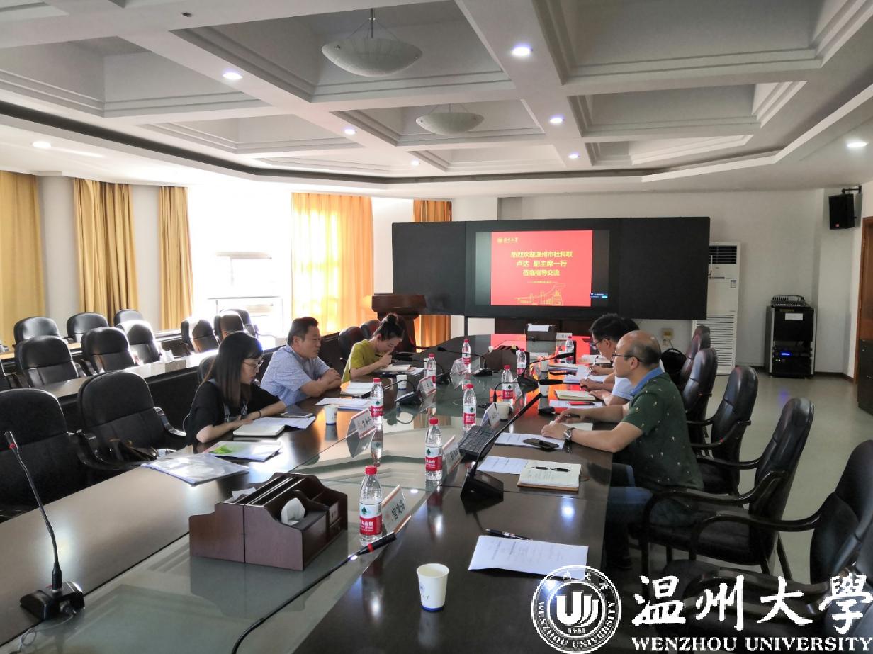 9月6日下午,温州市社科联卢达副主席一行来国产传媒 针对如何学习贯彻《关于深化新时代学校思想政治理论课改革创新的若干意见》进行座谈交流。国产传媒 院长卓高生,党委书记王柏民,副院长孙邦金、吴志敏以及国产传媒 部分教师出席了座谈会。