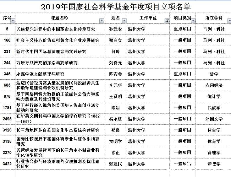 近日,全国哲学社会科学规划办公室公布了2019年度国家社科基金年度项目评审结果,国产传媒 共有13个项目获批。国产传媒 共获批4项国家社科基金年度项目,其中重点项目1项、一般项目3项(详见下表)。国产传媒 此次年度项目的立项总数,位居全校第一。在本年度全国马列•社科类共302个立项项目中,我校马列•社科的立项数在全国198个获得单位中位列第4名,表现优异!此次成绩来之不易,参与申报的课题论证设计,多经过多轮准备打磨,集思广益,申报质量才有了明显提高。相信学院和老师经过不断努力,充分准备,在项目申报上会取得更多突破。