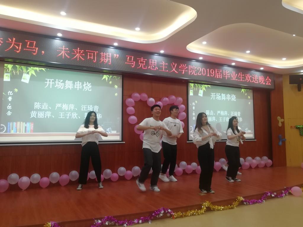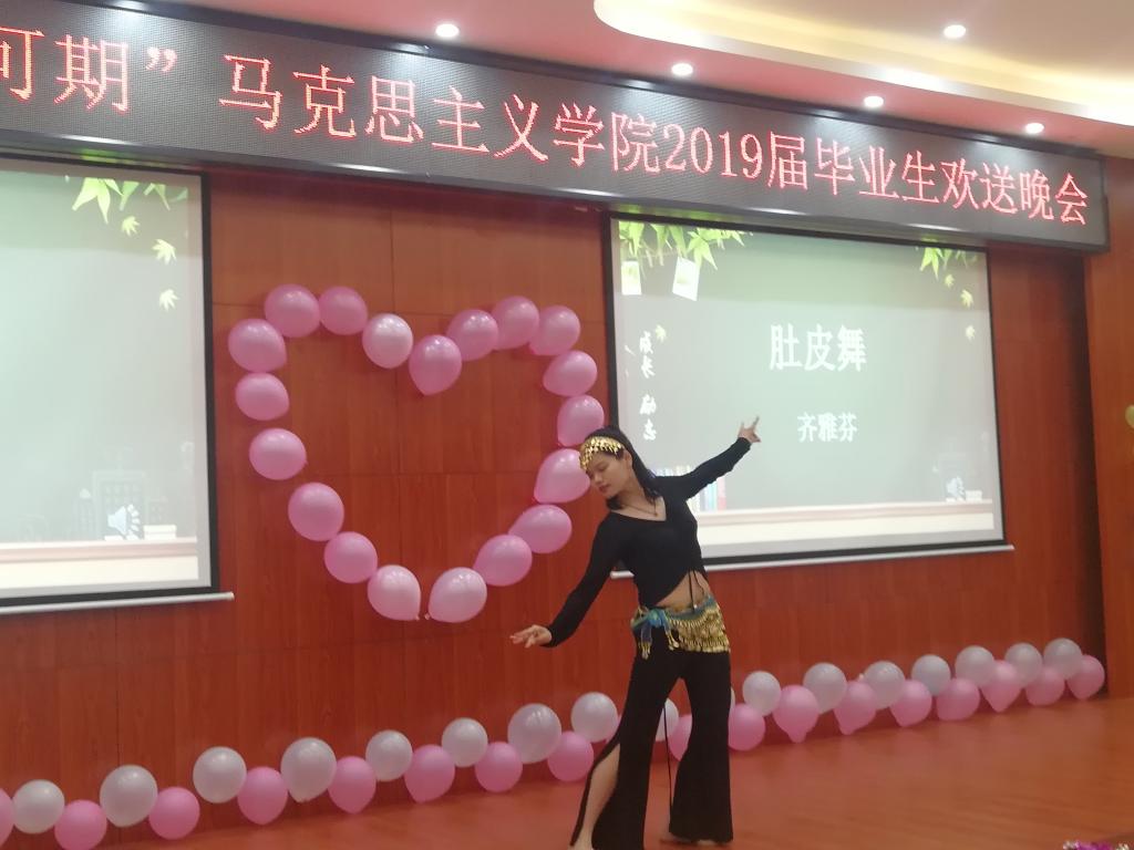 研会同学精心制作的VCR,再现了毕业生们三年学习时光的生活点滴,岁月青葱,难以忘怀,毕业晚会的序幕就此拉开。首先,孙武安院长用藏头诗为19届学生送别,将他们的名字融入诗句中,表达了对同学们的殷切期盼。其次,一段动感的舞蹈,迅速点燃全场,精妙绝伦的节目随之逐一上演,《光阴的故事》、《朋友》、《珍惜》等经典老歌将时间回溯到三年读研生活的点滴,触动心弦;相声《我是歌手》、小品《大宝相亲》、诗歌《致青春》等节目,将晚会推向一个又一个高潮,让人捧腹不已,现场气氛热烈;舞蹈《肚皮舞》、《啦啦操》、《爱的华尔兹》,或曼妙性感,或动感活泼,抑或舒缓优雅,无疑不是一场视觉盛宴,同学们陶醉其中。丰富多彩的节目中间还穿插了多个师生互动环节,增深了师生爱,凝聚了同窗情。最后,灯光熄灭,伴随着悠扬的音乐,一个嵌有毕业合照的创意蛋糕被缓缓地推上舞台,全体2019届毕业生环绕蛋糕,围成一个圈,许下对自己,对同窗,对未来的心愿!