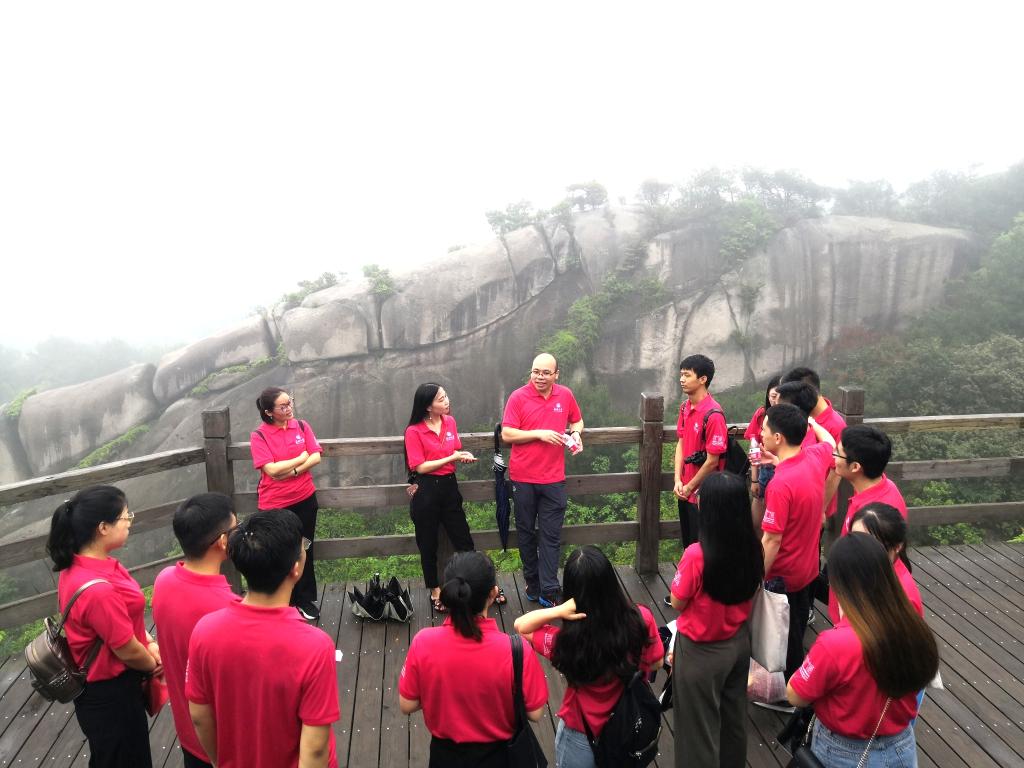 在国产传媒 研究生会的精心策划,校友代表们和老师同学们一边攀爬大罗山,一边交流近期的工作状况,一同回忆在校期间的美好片段,一路上充满着欢声笑语。到达目的地“龙脊”后,开展了别样的“校友恳谈会”,校友代表们表达了对母校美好的祝愿,也通过对自己工作生活的经验的总结,对学弟学妹们提出了许多良好的建议。学弟学妹们也纷纷提问,请教在校期间在学习科研的技巧以及就业求职技能。卓高生副院长通过大罗山文脉“龙脊”的典故,介绍了温州人才战略,国产传媒 育人目标,也和同学们一起畅想了国产传媒 的未来,他说到:“希望通过这次攀登大罗山,能让我们国产传媒 的学子更进一步的感受大美温州,人文温州,和谐温州,希望国产传媒 的学子能够留在温州,做新温州人,助力温州和母校发展。”