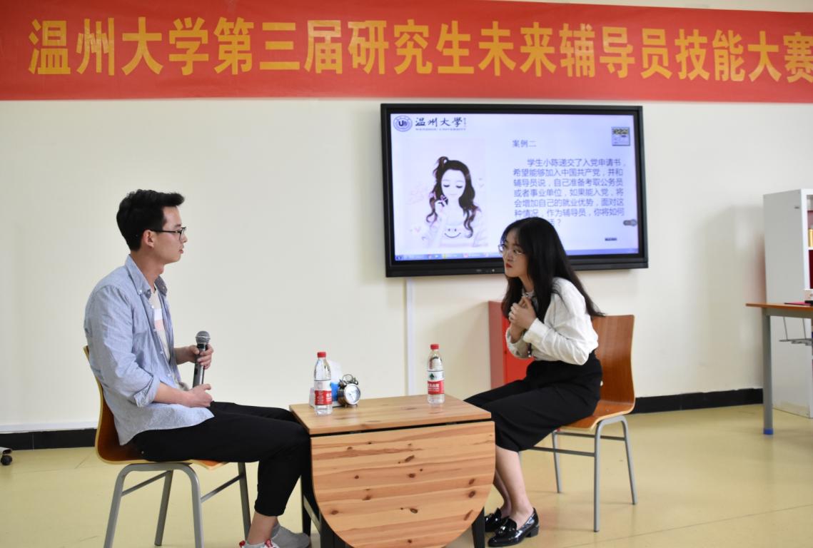 本次大赛参照辅导员职业技能大赛各级赛制,分为初赛笔试和决赛现场两轮。初赛为基础理论知识笔试,全校共50多位研究生同学参加了初赛,来自人文、商院、教院、体育、法政、数电、马院等7个学院共计13名参赛选手晋级决赛;决赛分理论宣讲、案例分析、谈心谈话三部分,从多方面考察了选手的综合素质。