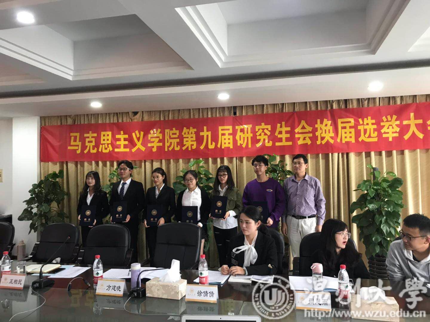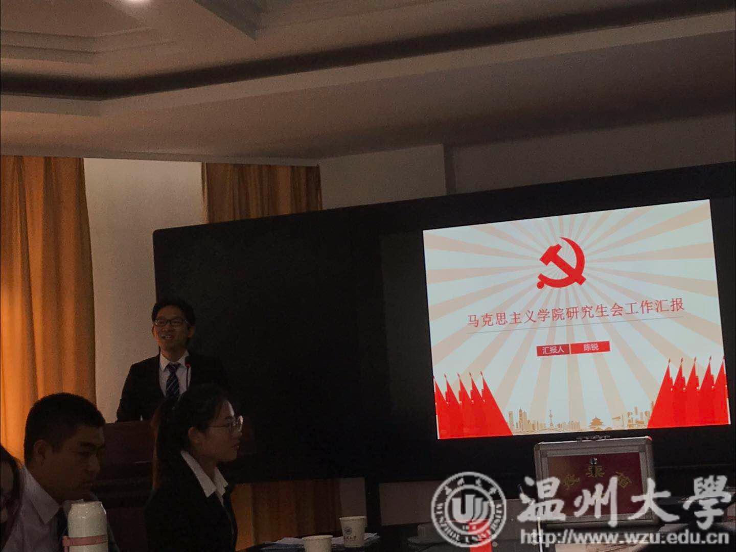 会议伊始,校研会嘉宾徐倩倩致辞,对过去一年马院研会的工作成绩给予了肯定,寄语即将产生的新一届研究生会,希望能更好服务同学。随后,研会主席陈锐汇报上年度研会工作,并对未来研会工作给予期望。紧接着,大会颁发了第八届研究生会委员聘书,优秀研会干部代表陈柯依发言,表达了对马院的感谢和对下一届研会成员的期待。