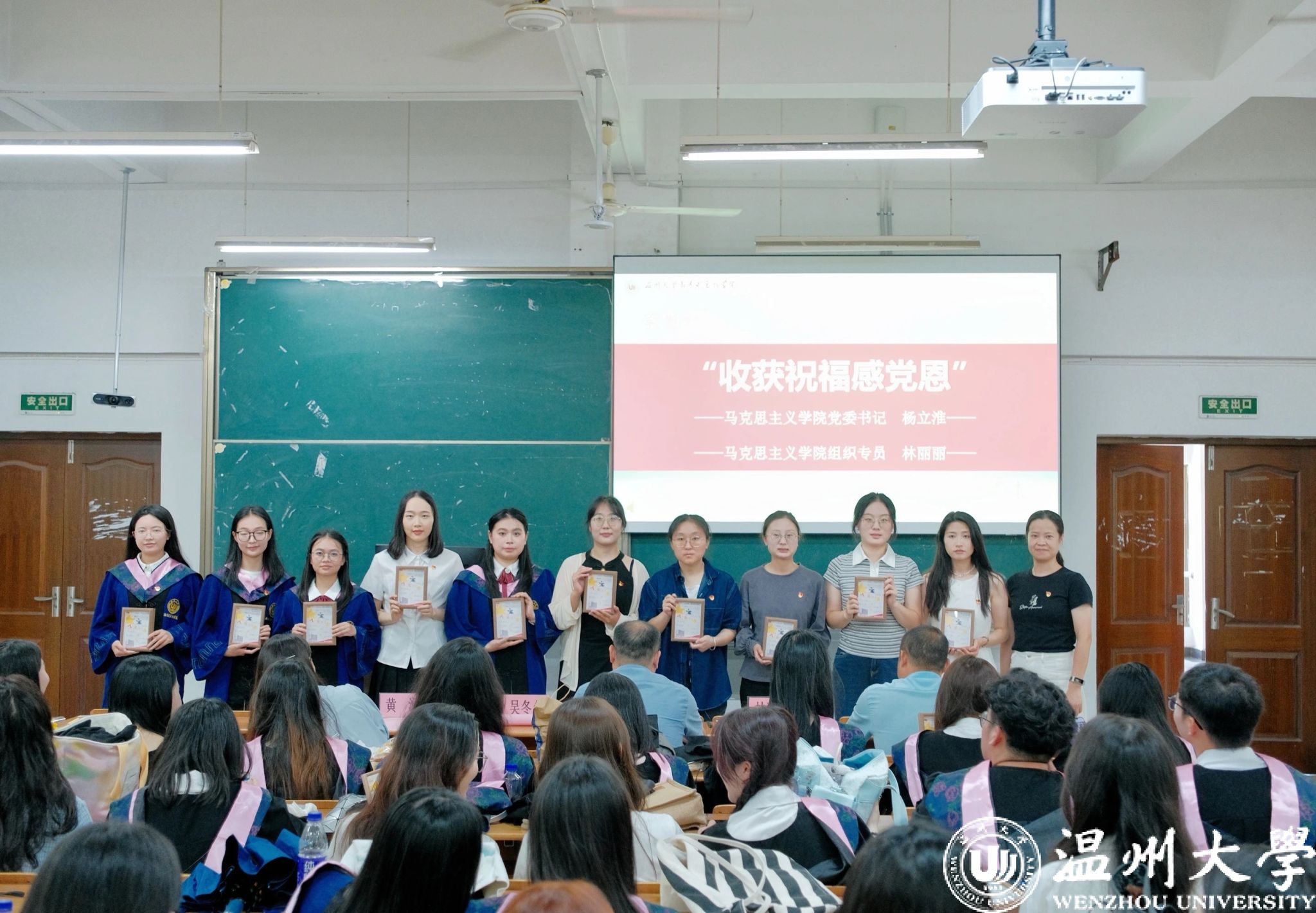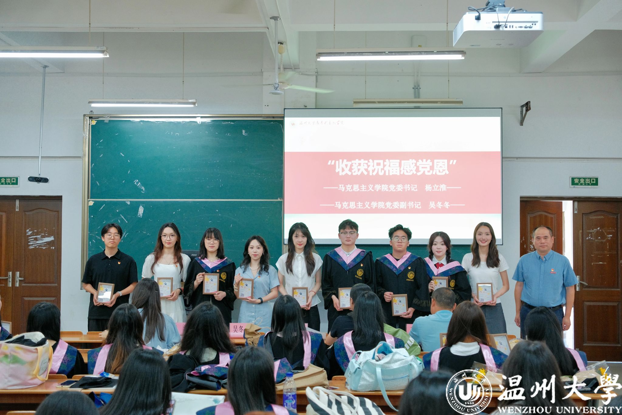 学院党委书记杨立淮老师、学院组织员林丽丽老师分别为研究生支部和本科生支部毕业党员发放“政治生日”纪念礼物。这份特别的临别赠礼,寄托着母校的殷切期望:愿每位青年党员无论身处何境,都能坚守初心使命,与党同向同行,在民族复兴的浪潮中勇毅前行,以青春之我续写红色华章,让信仰之光在时代征程中永不褪色。
